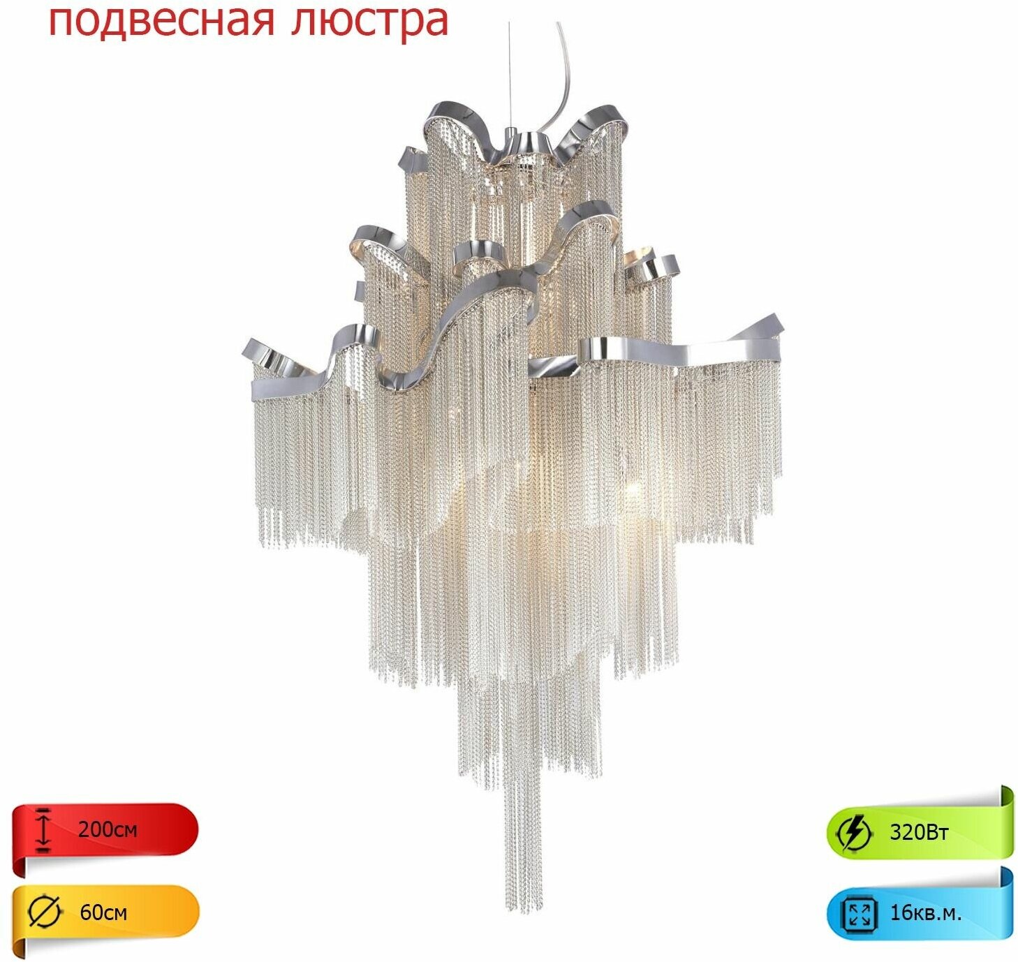 Каскадная люстра Multivello - продукт известной компании Favourite (Германия). Имеет максимальную мощность 320 Вт, освещает площадь до 16 кв. м. Отлично подойдет для таких мест, как спальня, гостиная. Впишется в интерьеры следующих стилей: Модерн.