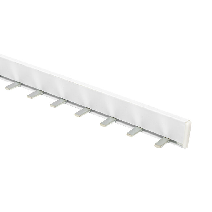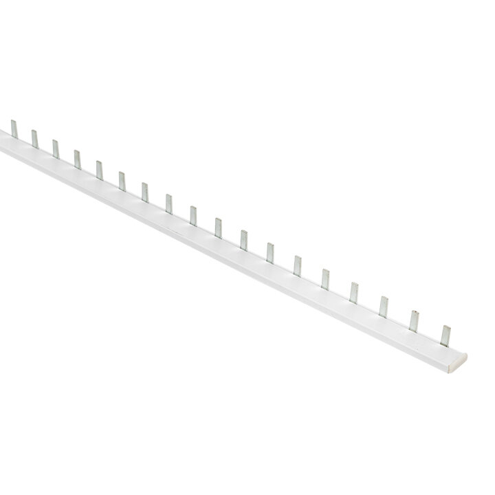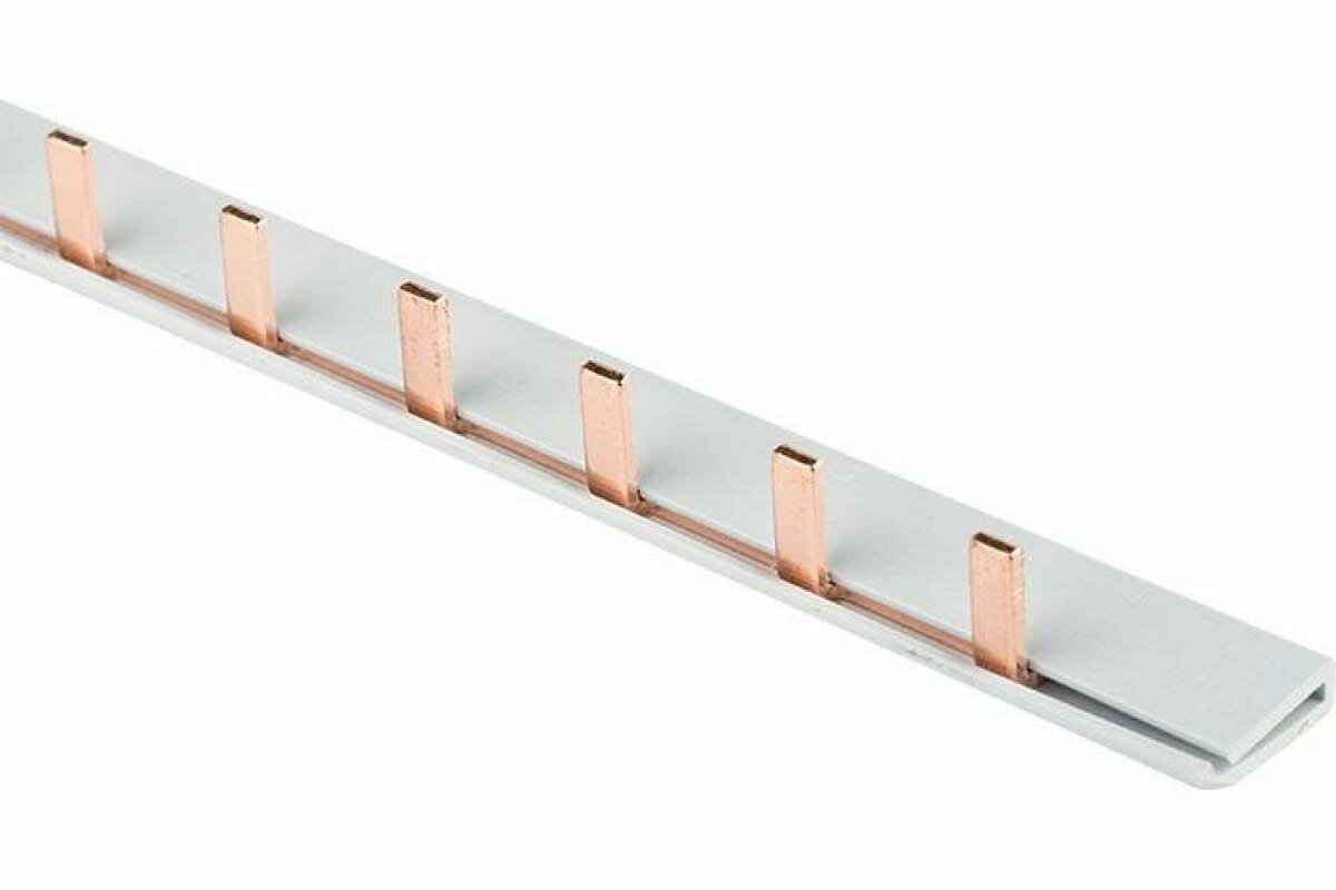 Шины соединительные производятся в двух исполнениях - FORK («вилка») и PIN («гребенка») на номинальные токи 63 и 100 А, на одно-, двух-, трех- и четырехфазную нагрузку. Шины соединительные представляют собой пластины выполненные из меди (шины на 100А – из луженой меди), закрепленные в корпусе из диэлектрического материала, не поддерживающего горения и выпускаются стандартной длиной 1 метр (54 модуля по 18 мм или 36-37 модулей по 27мм). Шины с шагом 18 мм используются для коммутации большинства модульного оборудования шириной кратно 1 модулю. Шины с шагом 27 мм используются с модульным оборудованием шириной кратно 1.5 модуля (автоматические выключатели ВА47-100, ВА 47-125).