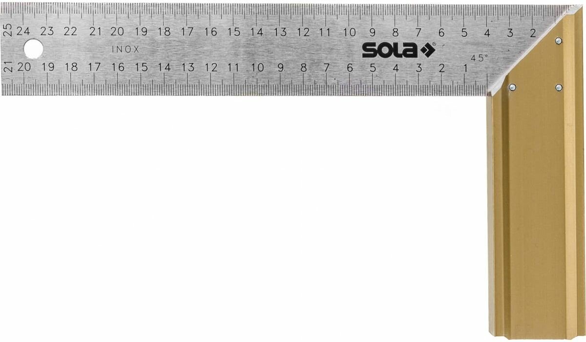 Cтолярный угольник (алюминий 500х170мм) SOLA 56012501 используется во время проведения строительных работ. Корпус из нержавеющей стали с алюминиевым основанием является гарантией долговечности. Угольник отличается удобством в эксплуатации, имеет две шкалы (см/мм) и скос 45 градусов.