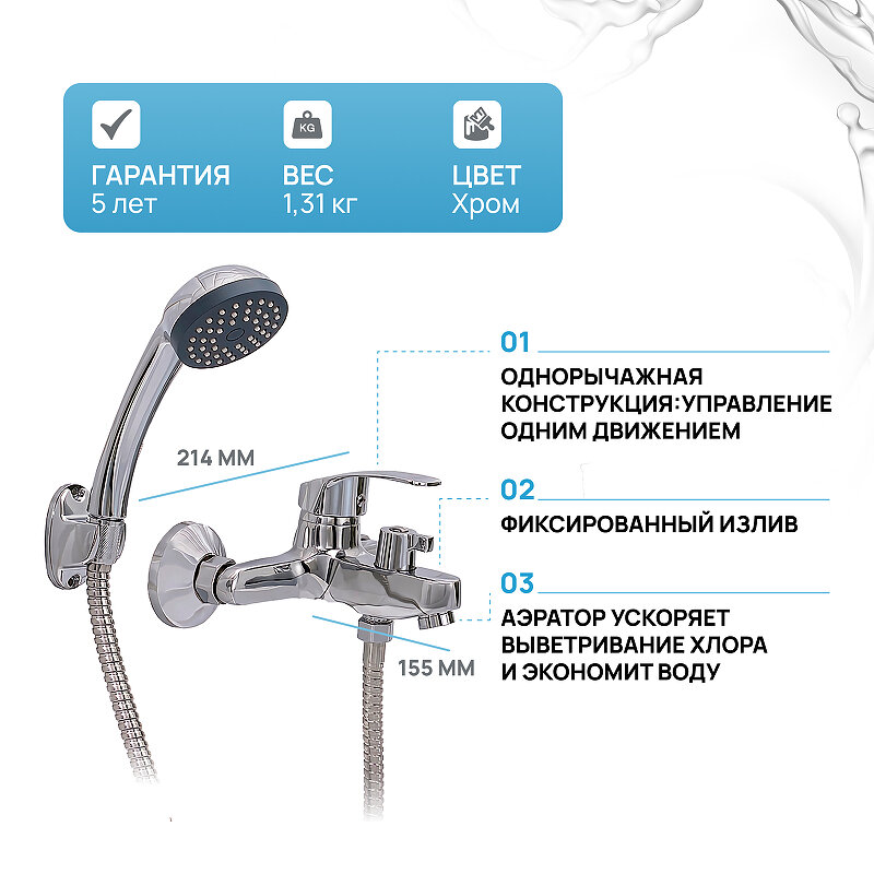 | Особенности | лейка, гибкая подводка, аэратор, защита от излома |