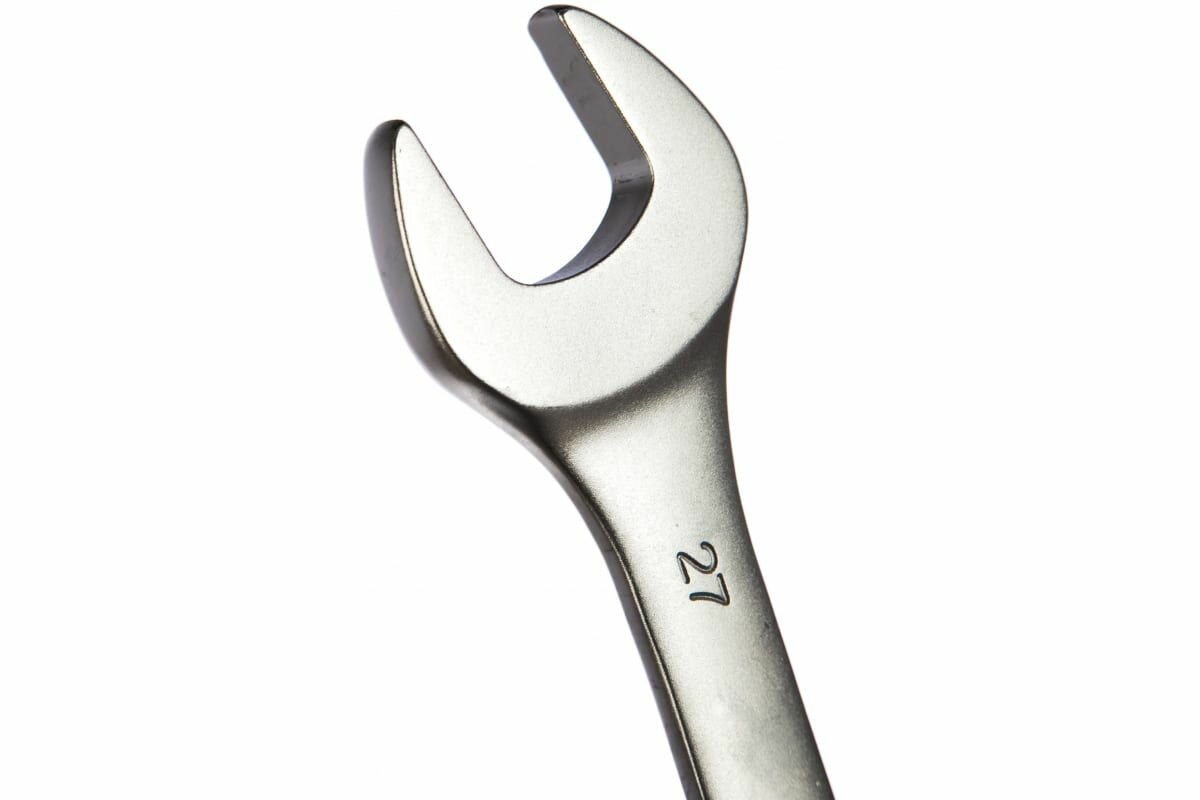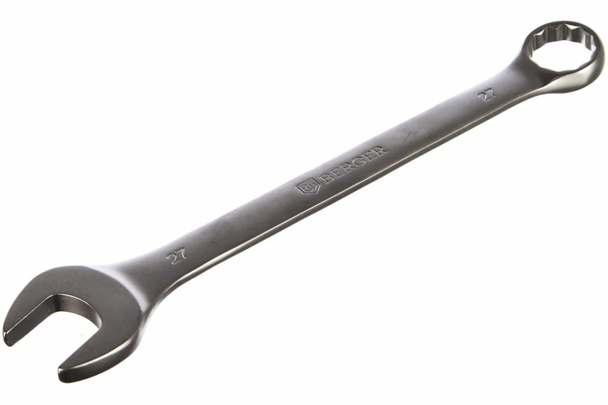 Комбинированные ключи 27 мм. Berger BG сочетают в себе одновременно и рожковые, и накидные головки. Специальная форма изделий способствует более легкой и быстрой работе с резьбовыми соединениями в труднодоступных местах. Высокая прочность, надежность и долговечность ключей обеспечивается благодаря качественной стали и защитному покрытию. Преимущества Материал Berger : прочная и качественная хром-ванадиевая сталь. Матовое антикоррозийное хромовое покрытие "сатин". Накидная часть изогнута под углом 15° для более комфортной работы в труднодоступных местах. Двенадцатигранный рабочий профиль минимизирует риск повреждения граней шестигранного крепежа. Двухсторонняя маркировка ключа облегчает идентификацию.