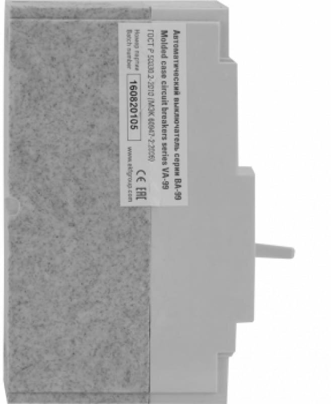 Выключатель ВА-99 выполнен в виде моноблока и состоит из основания и крышки с фальшпанелью, в которой имеется окно для рукоятки управления и толкатель кнопки "Тест" - проверки механизма отключения выключателя. Основание выполнено из термостойкой пластмассы, не поддерживающей горение и являющейся несущей конструкцией для присоединительных зажимов, неподвижных и подвижных контактов с системой дугогашения, механизма управления, блока защиты от сверхтоков. Крышка закрывает все подвижные элементы механизма управления и внутренние токоведущие части. внимание! Рычаг выключателя имеет три положения- "ВКЛ", "откл" и "срабатывание". Для включения после срабатывания необходимо перевести рычаг из промежуточного положения в положение "откл", а затем "ВКЛ". Механизм управления выключателя построен на принципе переламывающегося рычага и снабжен мощной возвратной пружиной. При взведении рукоятки механизма управления приводится в движение изолирующая рейка, на которой закреплены пружинные подвижные силовые контакты с гибкими соединениями. Рейка поворачивается в боковых направляющих, обеспечивая не только замыкание подвижных и неподвижных силовых контактов, но и необходимые провалы для увеличения и выравнивания давления на подвижные контакты. Действие возвратной пружины блокируется элементами переламывающегося рычага, находящимися в этот момент на одной прямой линии, опирающимися одним коленом на выступ поворотного элемента "Сброса" и механизма управления. "Сброс" механизма управления осуществляется посредством плоской рейки, на которую воздействуют через регулировочные винты толкатели биметаллических пластин тепловых расцепителей и электромагнитов защиты от коротких замыканий. Система дугогашения выключателей весьма эффективна и в исполнениях ВА-99 - 125-125А и ВА-99 - 160-160А - состоит из дугогасительных решеток со стальными никеллированнными дугогасительными вкладышами- в исполнении ВА-99 - 25-250А и выше применены дополнительные рассеиватели дуги в виде толстых стальных перфорированных пластин вставленных в крышку. Тем не менее, при установке выключателей в замкнутый объем распределительных устройств, необходимо учитывать возможность выброса вверх на расстояние до 30 мм продуктов горения дуги, в случае срабатывания защиты от сверхтока. Подключение проводов или шин со стороны источника питания производят на верхние зажимы выключателей с помощью болтов или зажимов входящих в комплект поставки. Допускается подключение питающих шин снизу. Провода или шины к потребителю подключают на нижние зажимы.