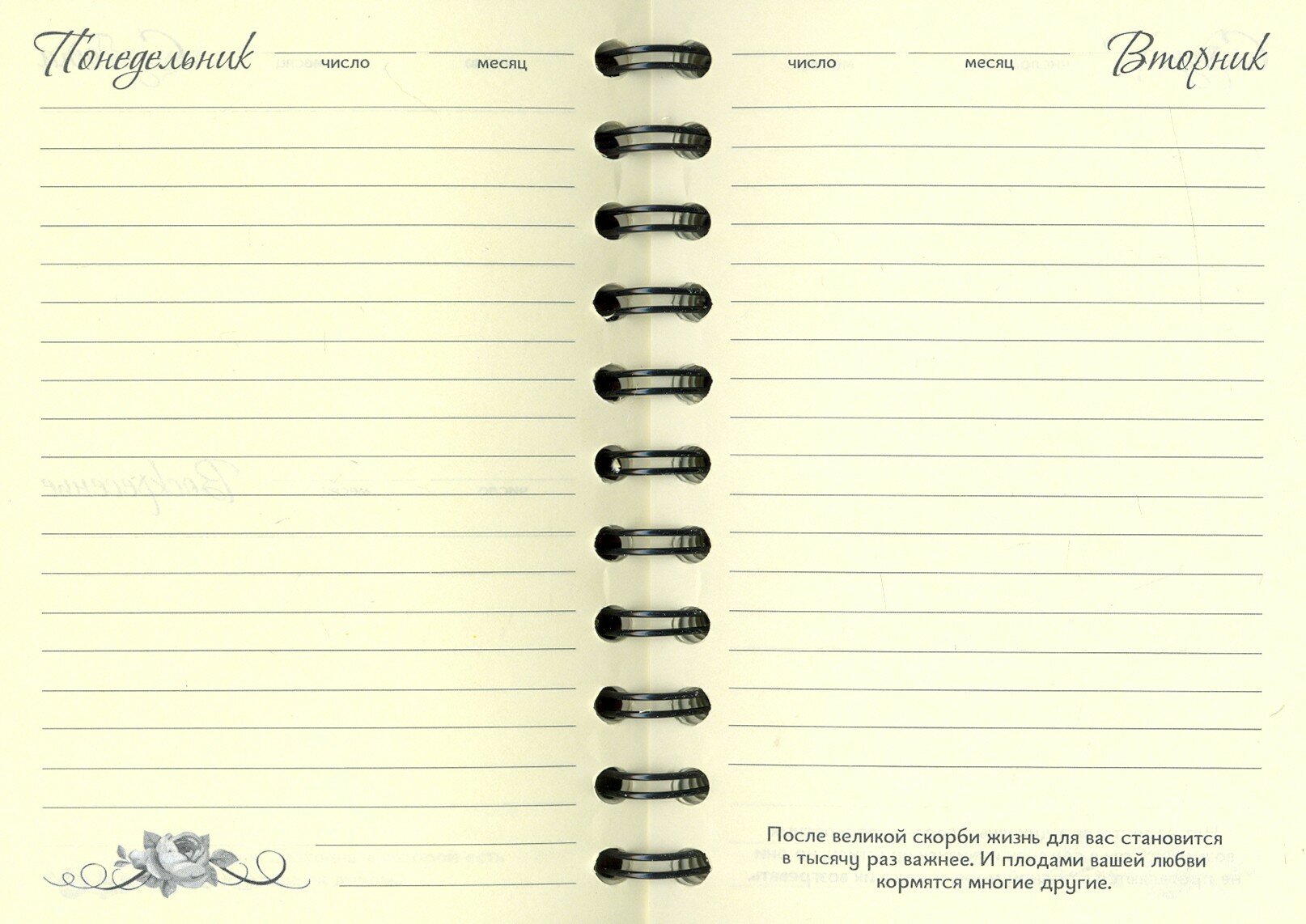Ежедневник недатирован, в нем обозначены только дни недели, вы можете начинать ведение записей в любой день года.
