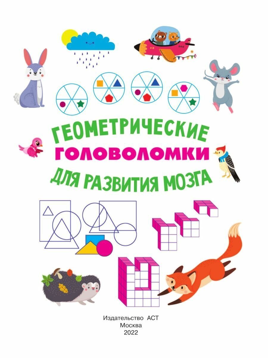 "Геометрические головоломки для развития мозга" - это сборник интересных задачек для дошколят. На красочных страничках - занимательные задания, которые помогут ребятам развить логическое мышление и пространственное воображение. Геометрия - больше, чем школьный предмет: она формирует рациональное и упорядоченное представление о мире в целом. Решение геометрических головоломок - это комплексная тренировка для мозга, интересное и полезное занятие для детей.