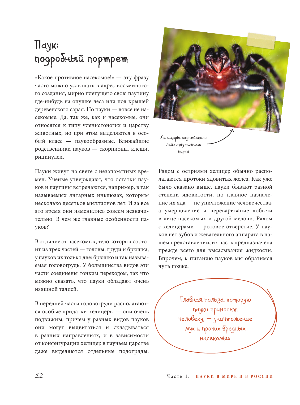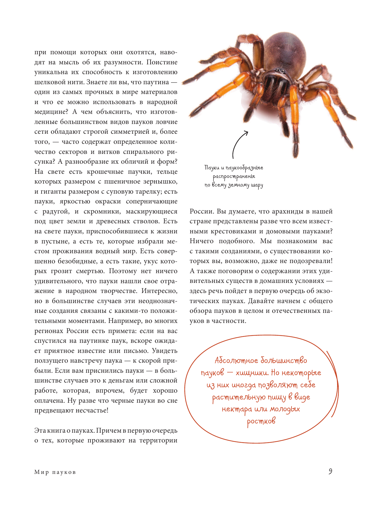 Пауки населяют шесть из семи континентов и обитают в самой различной среде - от пустынь и лесов до арктической тундры и городов. Эта иллюстрированная энциклопедия познакомит вас с популярными видами пауков всех форм и размеров. Вы узнаете о том, как они выглядят, где обитают, что едят, как размножаются. Несмотря на то, что у многих внешний вид пауков вызывает ужас, есть те, кто увлекается паукообразными и исследует их.