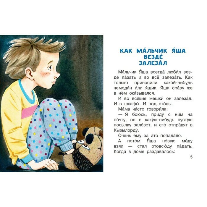 В книгу вошли весёлые рассказы знаменитого детского писателя Э. Успенского про маленького мальчика Яшу. Непоседливый и любознательный герой историй обожает рисовать, играть с друзьями и мечтает о собственном слоне. Забавные приключения Яши научат малышей слушаться родителей, бережно относиться к животным и соблюдать правила хороших манер. А крупные буквы и ударения позволят ребятам самостоятельно познакомиться с увлекательным произведением.