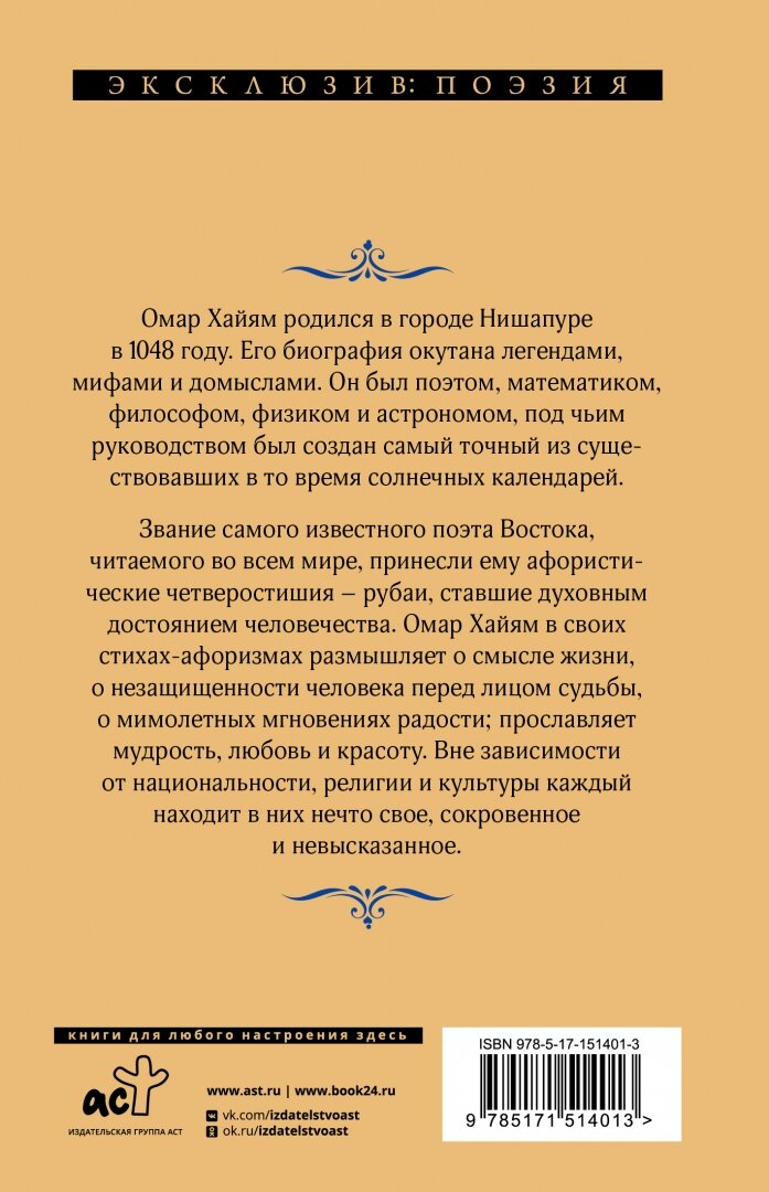 Книга: Рубаи (Омар Хайям); Издательство АСТ, 11-12 вв