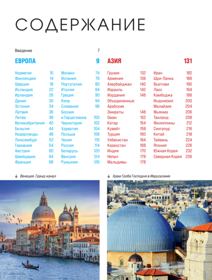 Внутри вас ждут разделы - части света и их самые интересные государства. Вы сможете насладиться красивыми фотографиями достопримечательностей, городов и изумительных мест! В каждой стране вас ждет много занимательных фактов: главное блюдо, самые известные жители, что можно привезти в качестве сувенира, и другая полезная информация для того, чтобы вы легче смогли определиться с будущей поездкой! Побывать в замках Франции или поехать на жаркие острова Таиланда? Покататься на лыжах в горах Италии или потеряться среди небоскребов Нью-Йорка? Побывать на сафари в Танзании или увидеть деревню хоббитов в Новой Зеландии?
