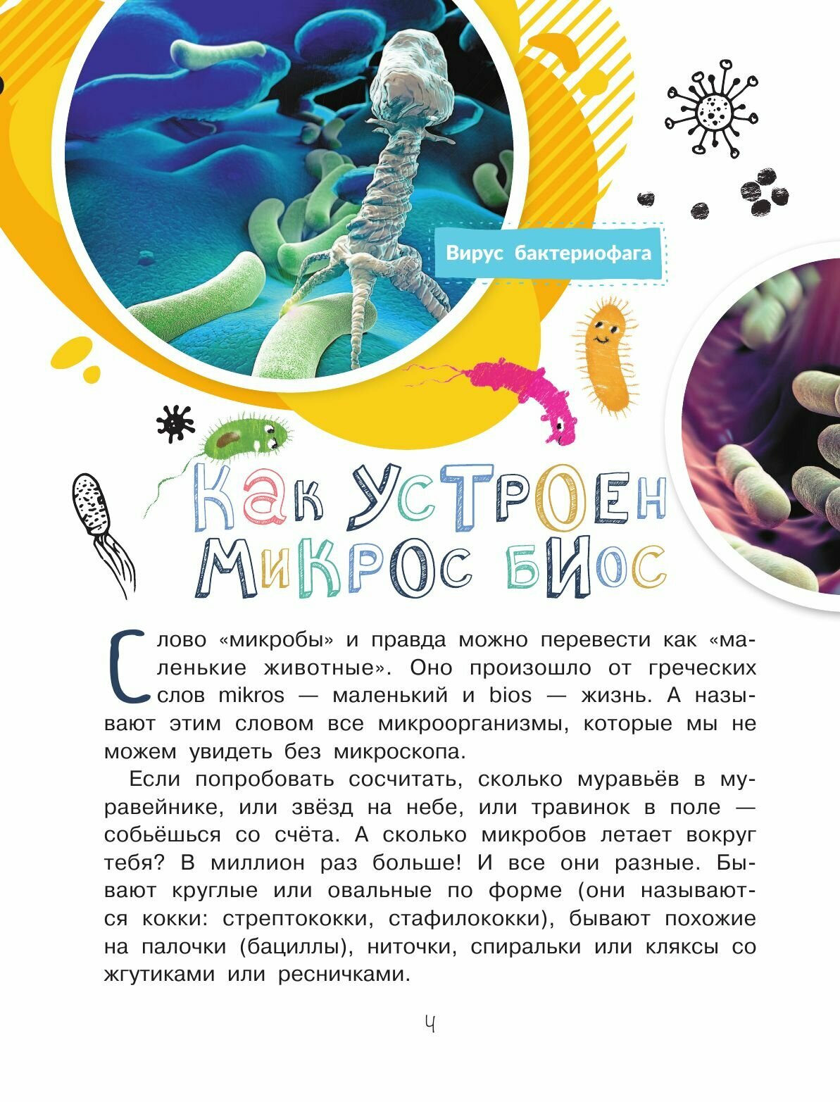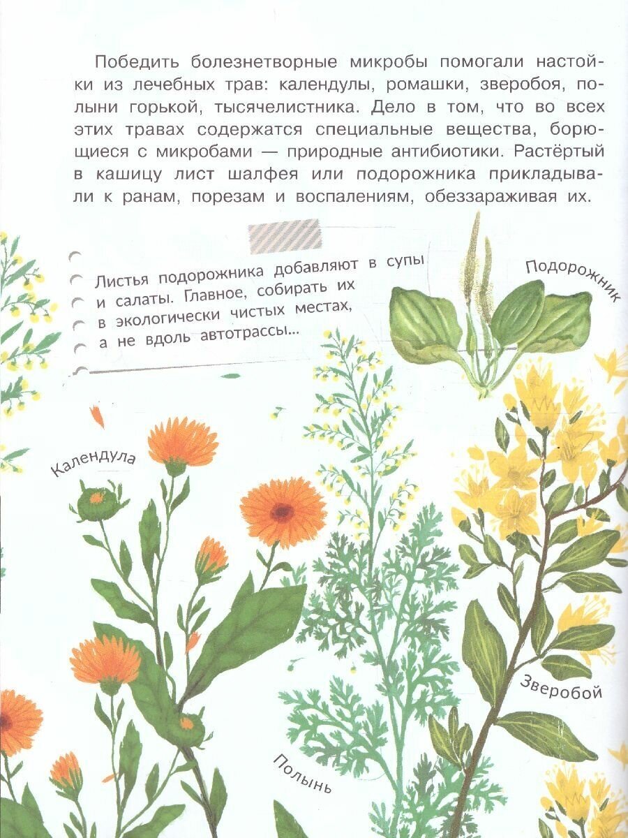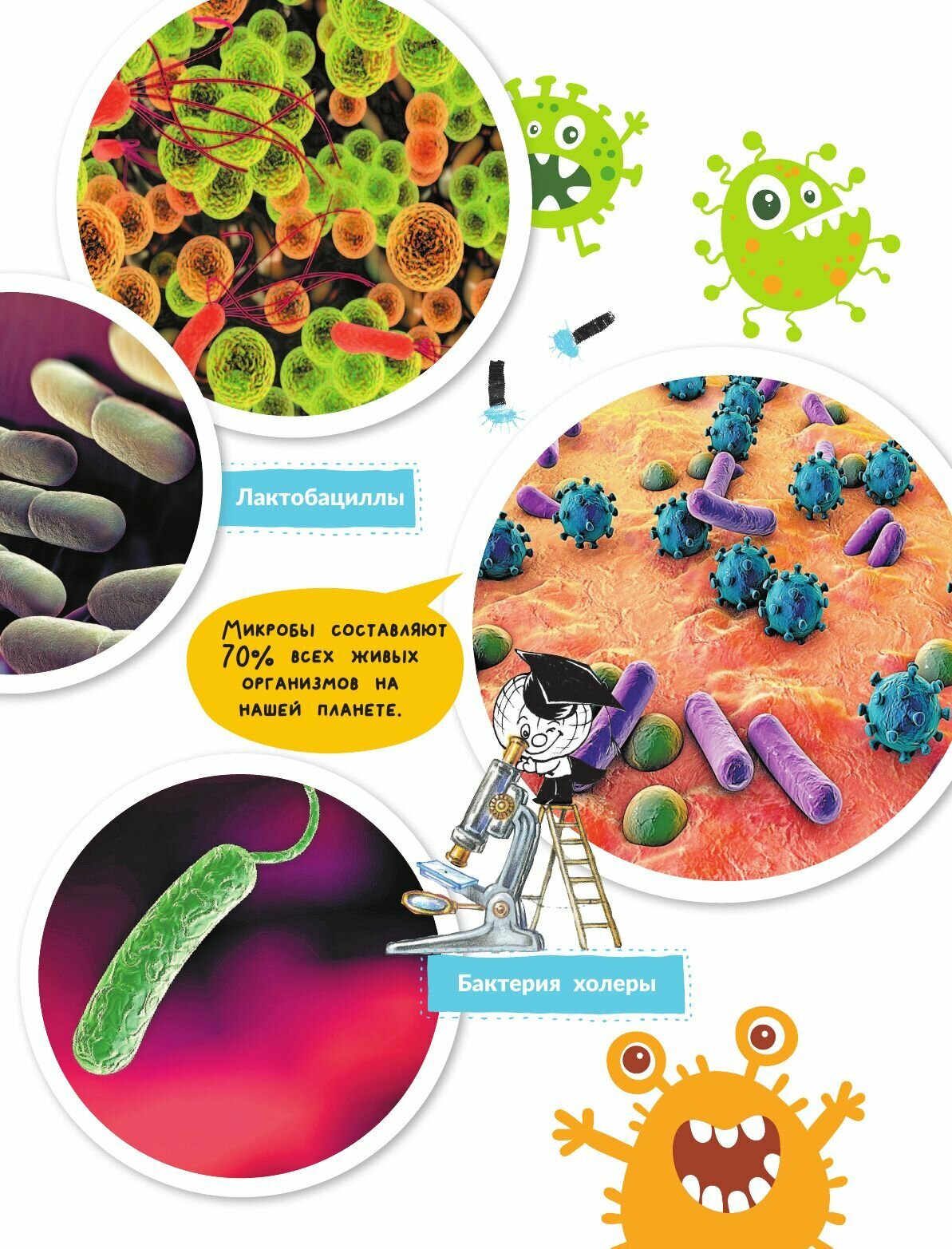 Понравился и крупный шрифт, и великое множество иллюстраций с подписями и без. Увидели разные виды бактерий: безъядерные и с ядром, узнали, какие бактерии полезные и помогают очищать почву и воду, а какие могут вызвать болезни.