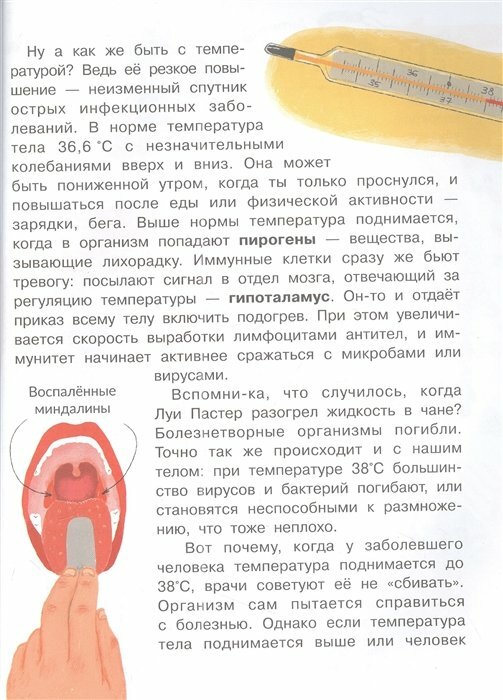 Отличная книга, к покупке рекомендую. Во-первых она очень-очень красочная, большая, яркая! Во-вторых ребенок (часто болеющий) стал как-то спокойнее относиться к своим простудам, не киснет и не расстраивается, сразу начинает мне рассказывать, что да как, стал понимать природу болезней. ну а в-третьих, цена, для такого качественного издания, подходящая. Буду наблюдать всю серию!