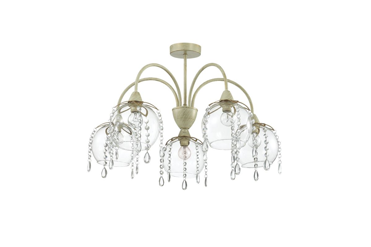 Люстра потолочная серии HOMMI оформлена в классическом стиле. Светильник состоит из стеклянных плафонов, украшенных металлическим декором и хрустальными подвеками и изящной арматуры благородного бежевого с золотой патиной цвета. Плавные, утонченные линии арматуры и эффектные плафоны несомненно украсят Ваш интерьер, выполненный в стиле прованс. Цоколь E14. Мощность 5*40W. Нет ламп в комплекте.