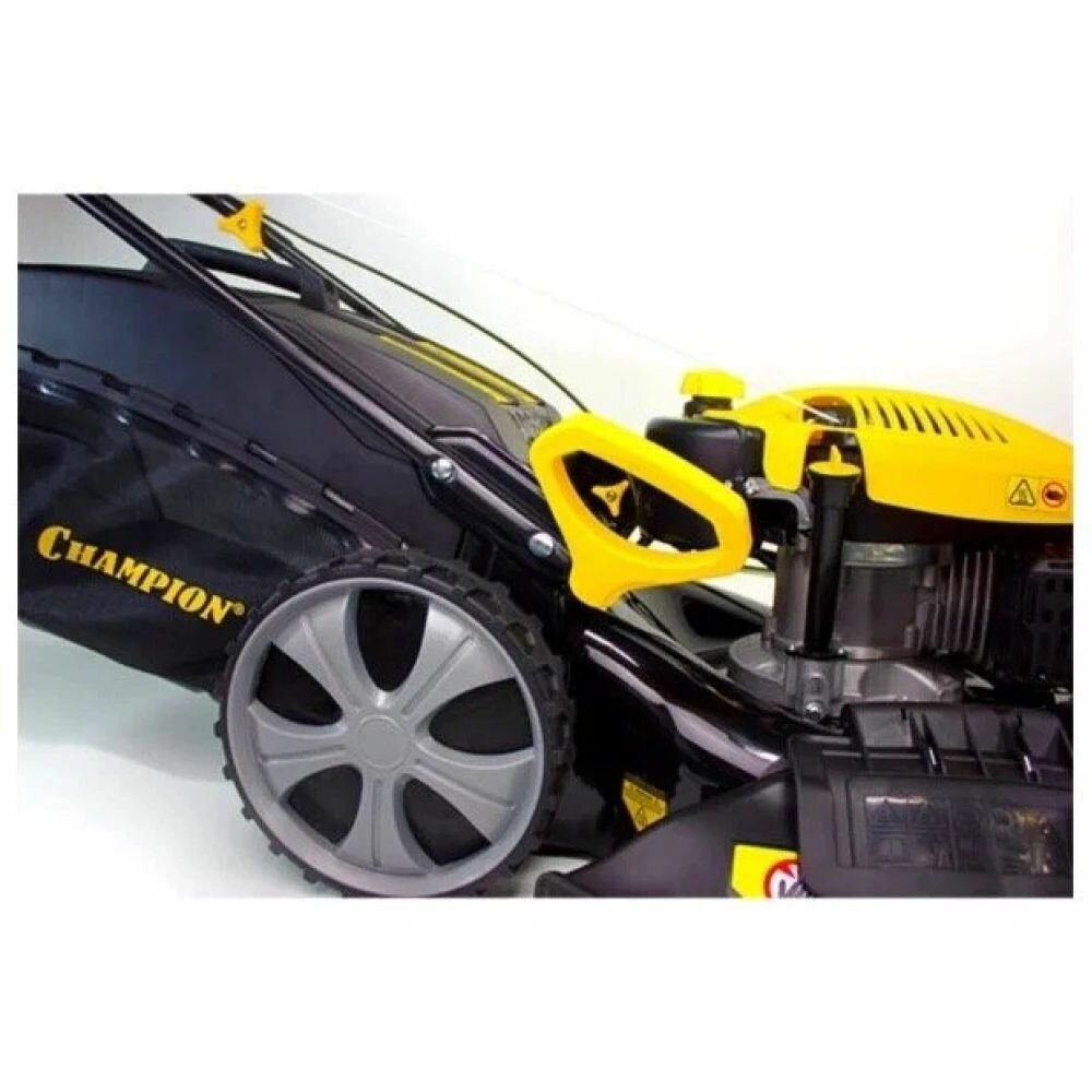 Champion - самоходная бензиновая газонокосилка для кошения травы на участках средней и большой площади. Косилка (3 в 1) иммет функции сбора травы в травосборник, мульчирование и выброс травы в бок.