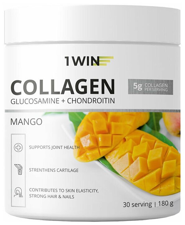 1WIN Комплекс "Коллаген + хондроитин + глюкозамин" со вкусом манго 30 порций 180 г (1WIN ) Collagen + Chondroitin + Glucozamin
