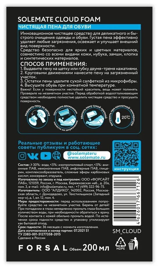 На сегодняшний день товар «Чистящая пена Solemate Cloud Foam ASSORTED (размер: 150ml)» можно купить с кешбеком в 1 магазине: Яндекс.Маркет
