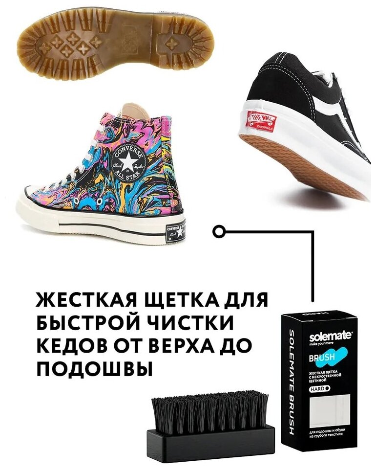 Почистить белую подошву кроссовок будет намного легче с жесткой щеткой Solemate Hard. Верните своей обуви былую белизну.