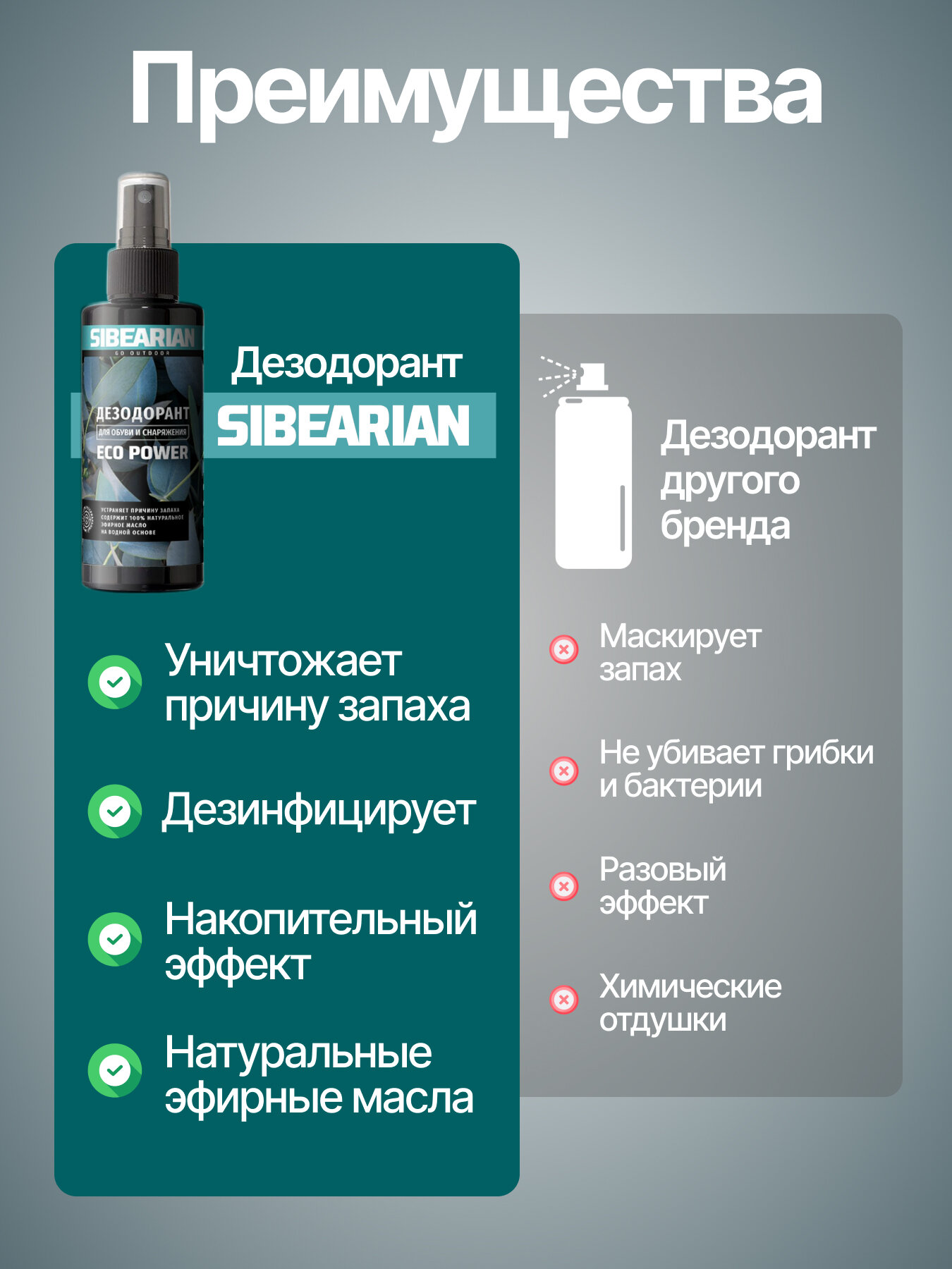 Антибактериальный дезодорант SIBEARIAN SPIRIT OF HAVANA для обуви и спортивного снаряжения с благородным ароматом листьев табака с нотками ванили и натуральной кожи. Избавит спортивное снаряжение, одежду и обувь от неприятного запаха. Отлично подойдет для обработки кожаной обуви, перчаток, горнолыжных и сноубордических ботинок. Благодаря наличию в составе антибактериального компонента и наночастиц серебра устраняет микроорганизмы, являющиеся причиной возникновения неприятного запаха. Обладает мягким благородный ароматом листьев табака с нотками ванили и натуральной кожи.
