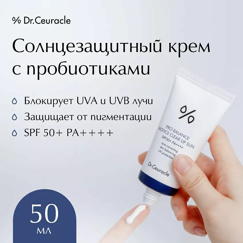 Dr.Ceuracle Солнцезащитный крем-корректор для лица и тела с пробиотиками Pro Balance Biotics Clear Up Sun SPF50+ PA++++ 50 мл (8806133614884)