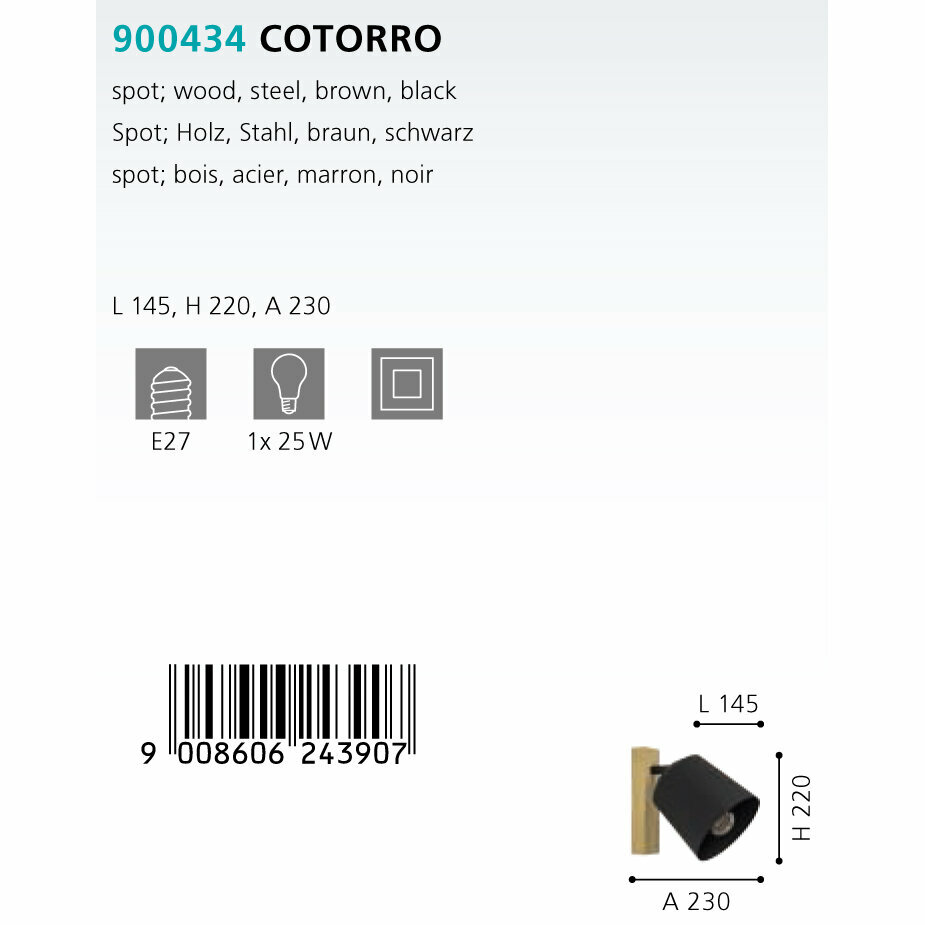 - Eglo 900434 Spotleuchte COTORRO E27 1X25W braun, schwarz L:14.5cm H:22cm dimmbar