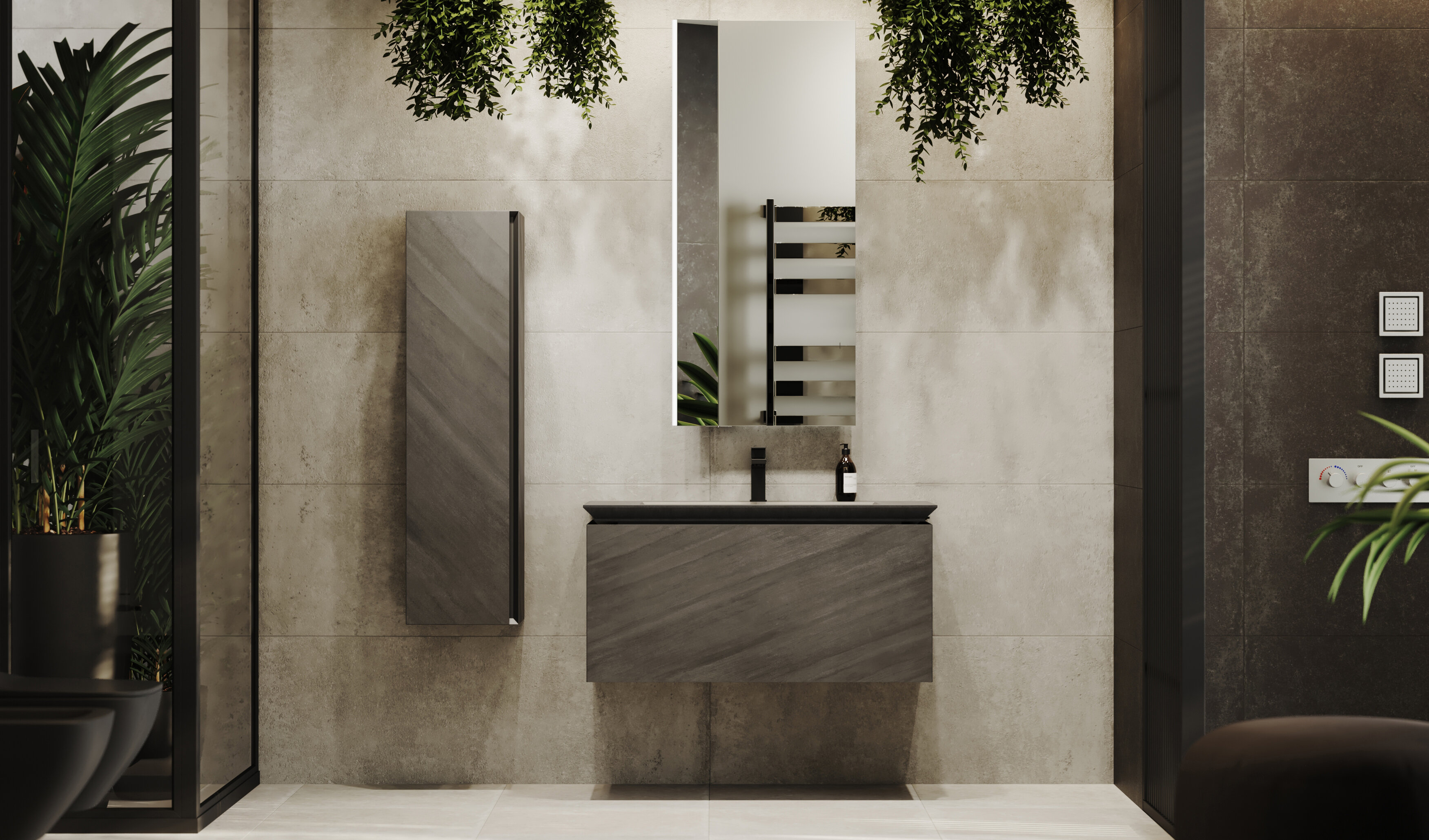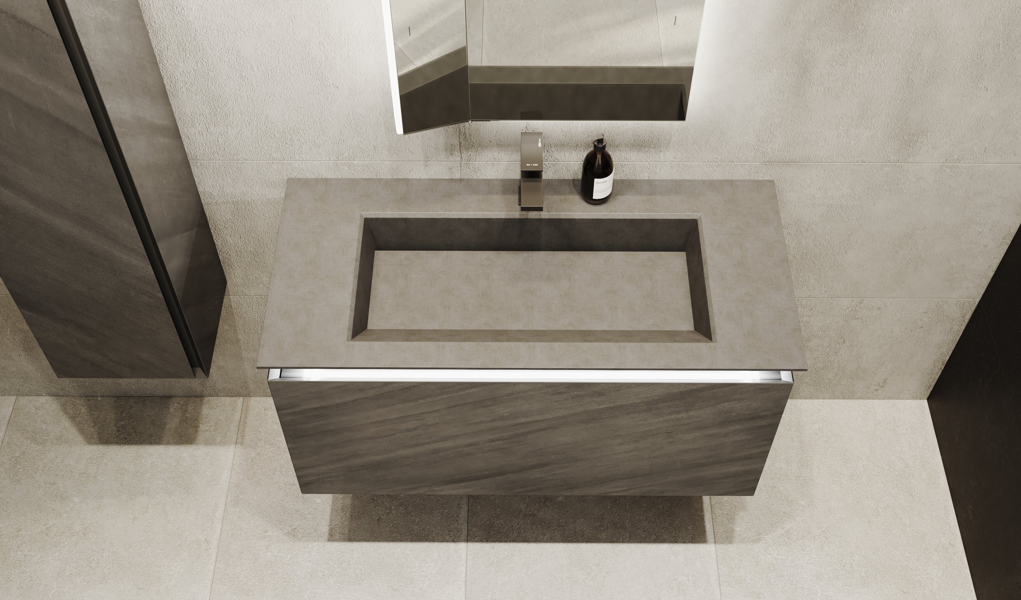 Тумба под раковину Jorno Incline Inc.01.100/P/Bet/JR бетон для ванной комнаты от российского бренда. Тумба относится к современой коллекции Incline и выполнена в серых цветах.