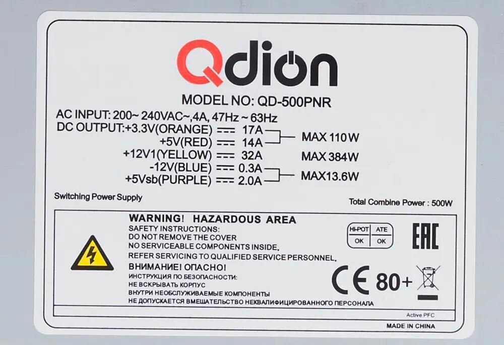 | Наименование модели | Q-DION QD500-PNR 80+ |