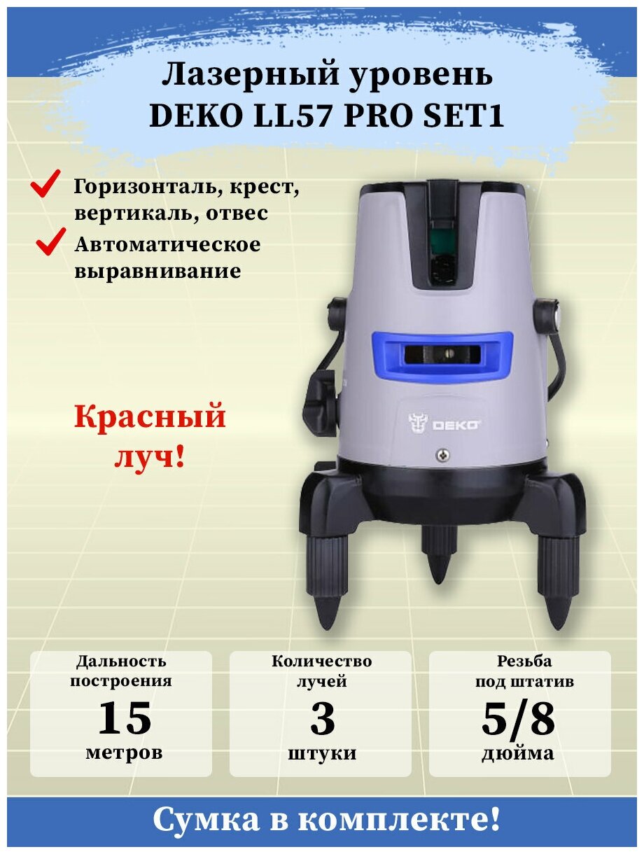 - ЛАЗЕР! Уровень лазерный самовыравнивающийся DEKO LL57 SET 4