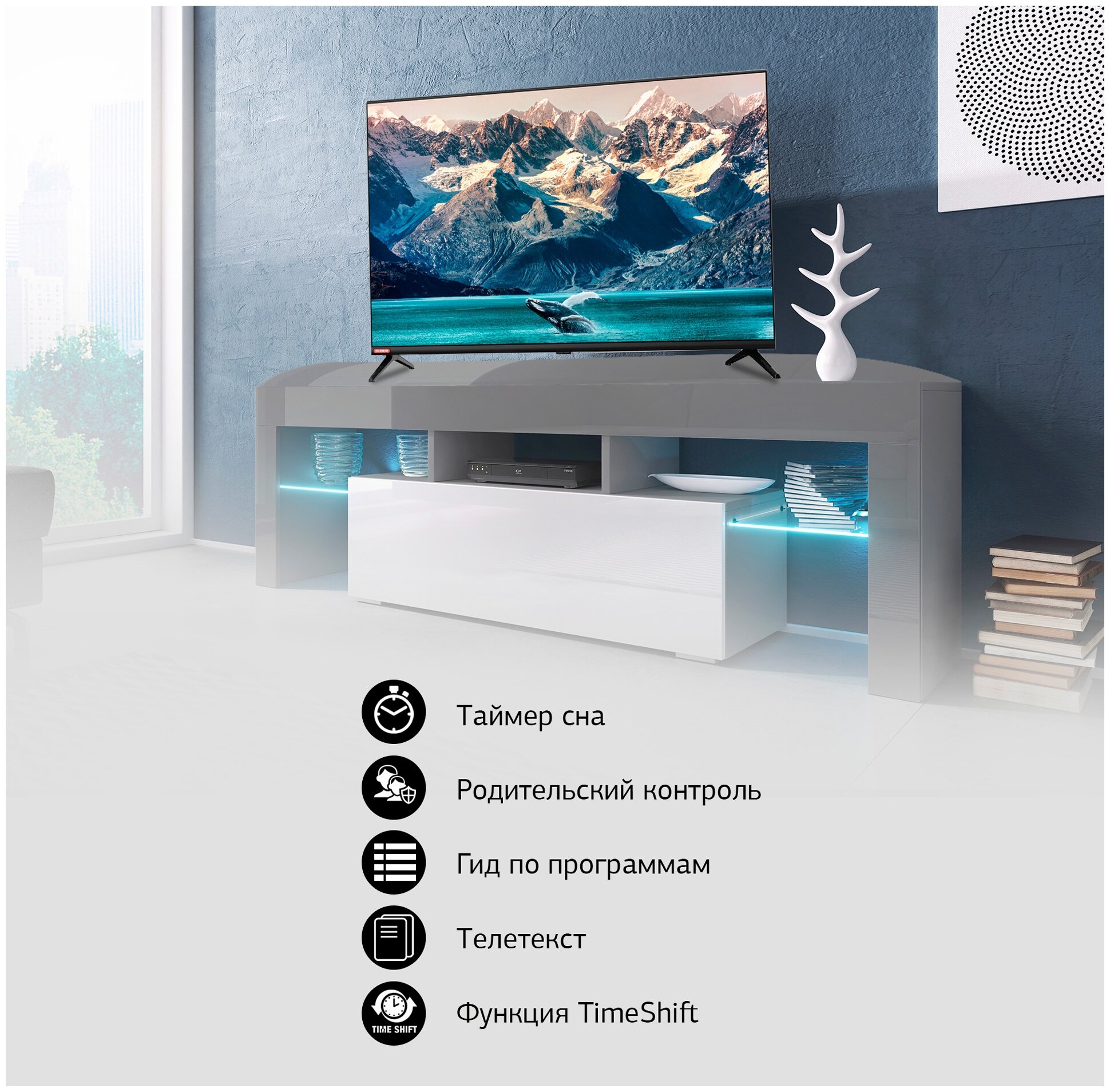 Из полезных дополнительных функций в данной модели реализованы: родительский контроль – для контроля контента, потребляемого детьми, TimeShift – для перемотки эфира, телегид и телетекст – для ориентирования по сетке передач, таймер сна – для отложенного отключения питания.