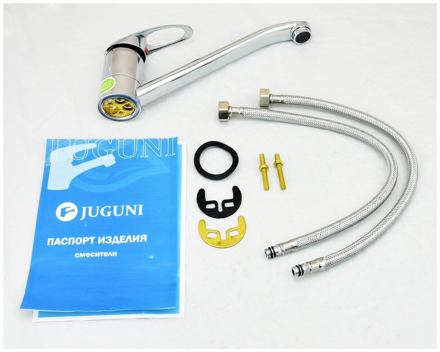 Смеситель для кухни Juguni (GN0420) с гибкой подводкой литой поворотный излив 230 мм (0402.610)