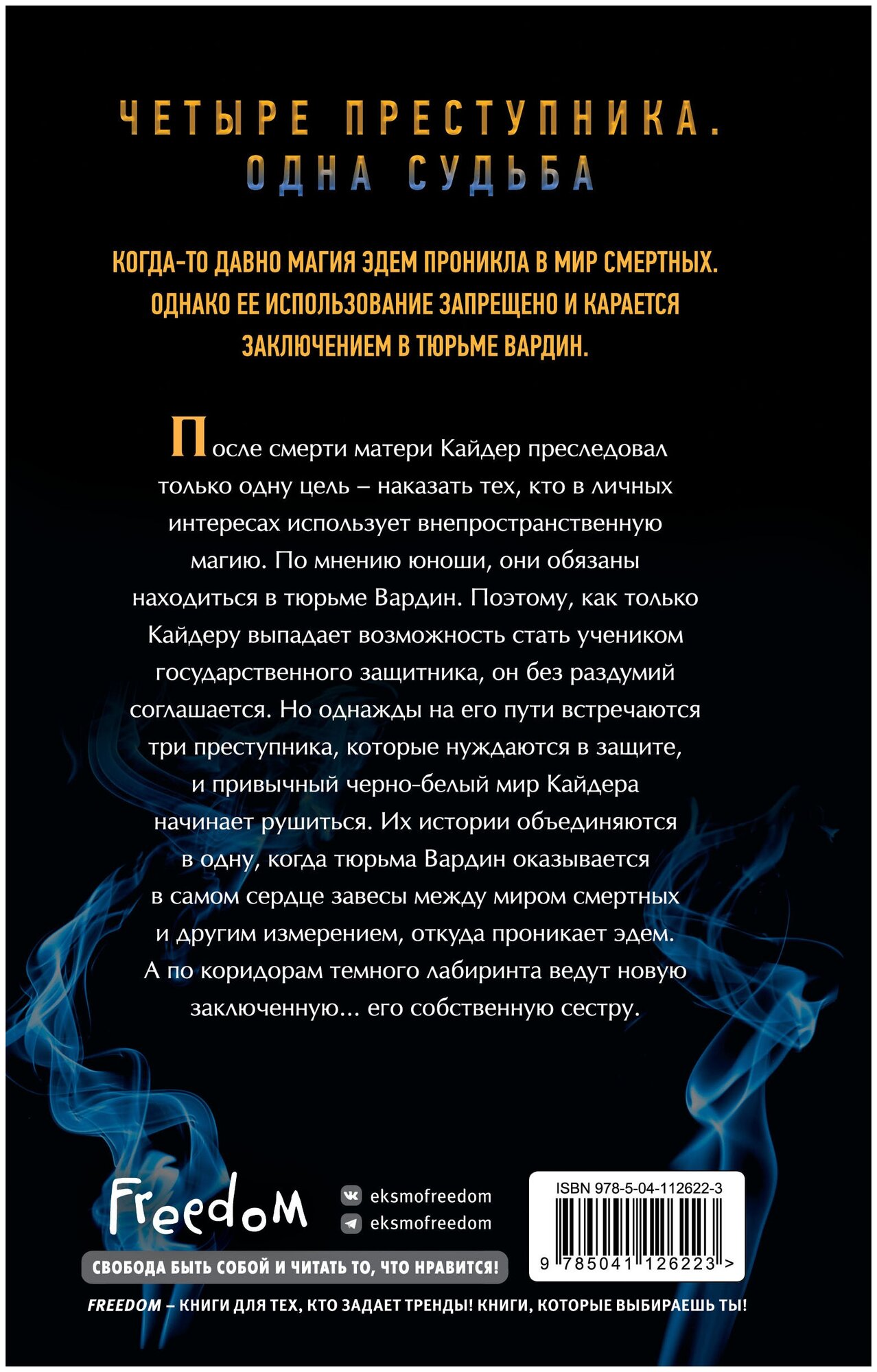 После смерти матери Кайдер преследовал только одну цель - наказать тех, кто в личных интересах использует внепространственную магию. По мнению юноши, они обязаны находиться в тюрьме Вардин. Поэтому, как только Кайдеру выпадает возможность стать учеником государственного защитника, он без раздумий соглашается. Но однажды на его пути встречаются три преступника, которые нуждаются в защите, и привычный черно-белый мир Кайдера начинает рушится. Их истории объединяются в одну, когда Вардин оказывается в самом сердце завесы между миром смертных и другим измерением, откуда проникает эдем. А по коридорам темного лабиринта ведут новую заключенную… его собственную сестру.