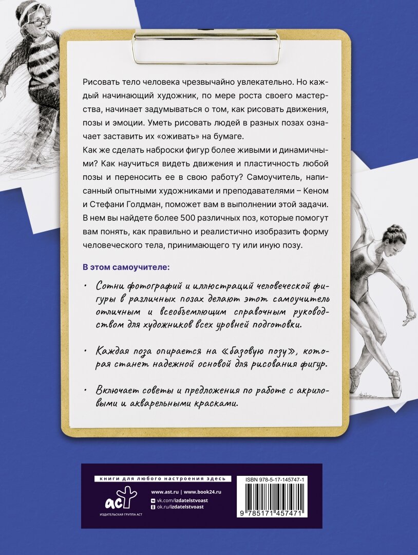 Как же сделать наброски фигур более живыми и динамичными? Как научиться видеть движения и пластичность любой позы и переносить ее в свою работу? Самоучитель, написанный опытными художниками и преподавателями – Кеном и Стефани Голдман поможет вам в выполнении этой задачи. В нем вы найдете более 500 различных поз, которые помогут вам понять, как правильно и реалистично изобразить форму человеческого тела, принимающего ту или иную позу.