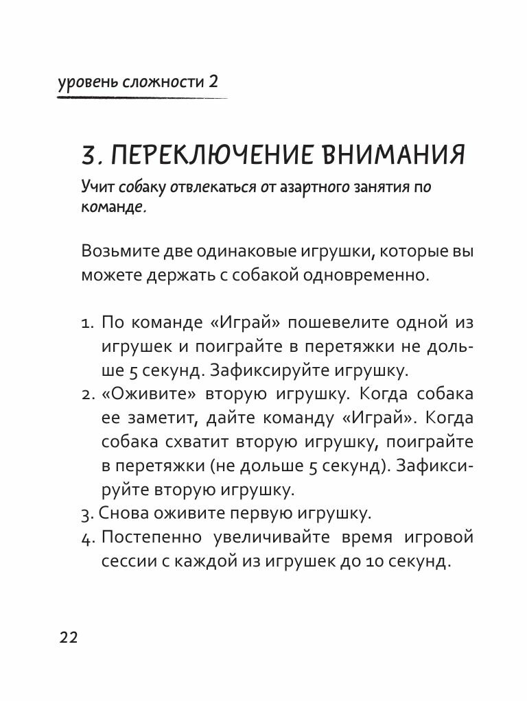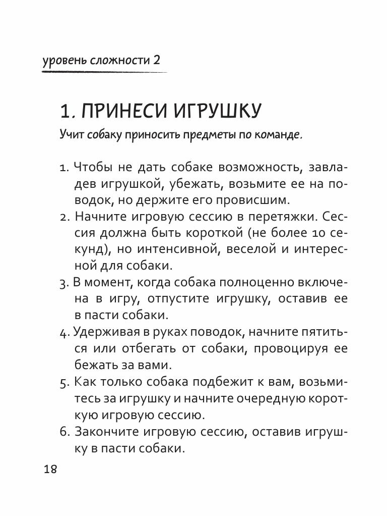 С нетерпением ждала заказ, чтобы прочитать эту книжку и найти интересные игры со щенком. Прочитала всю минут за 30 (шрифт для младших школьников по размеру). Но это не игры, а дрессировка. Причём для собаки, которая уже умеет сидеть на выдержке. А в половине игр собака просто наестся туалетной бумаги и вы отправитесь с ней к врачу.