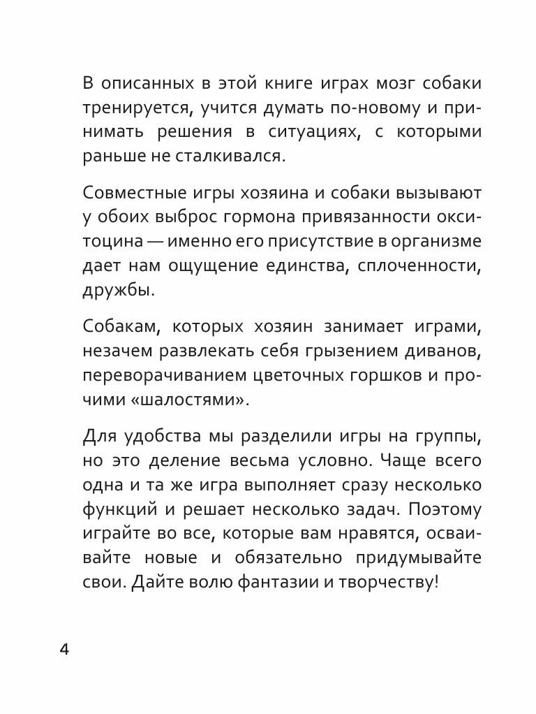Данная книга нам очень помогла в процессе воспитания наших питомцев, большое спасибо автору, очень понятная лексика и легко читается. Подойдёт для щенков и для взрослых собак. Очень понравилось разнообразие игр, можно играть на улице, дома и даже смастерить какую-то игрушку из простых вещей, с которой будет интересно играть собаке. Хороший подарок будущим владельцам.