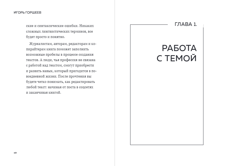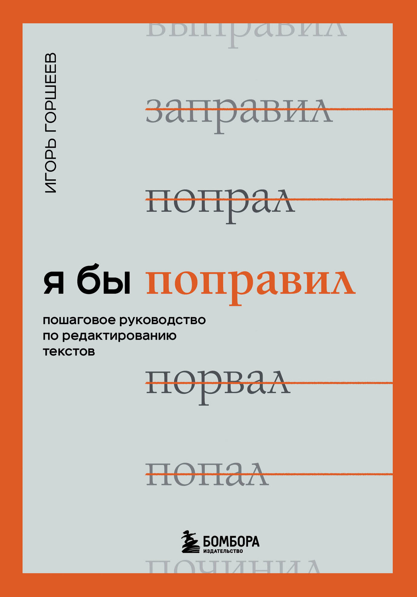 «Я бы поправил» – великолепное пособие, объясняющее как работать с темой, композицией, смыслами, словами, предложениями, заголовками. Книга поможет очистить текст от мусора дублирующих и вводных слов, местоимений и уточнений. Под сомнение Игорь Горшеев ставит и знаки вопроса, которые так популярны в маркетинговых текстах. При работе с заголовками автор не предлагает никаких хитрых формул, он просто объясняет роль этого элемента в тексте. И становится понятно, как подходить к созданию заголовка. Не игнорирует книга и типографику с ее правилами написания тире, дефисов, кавычек, чисел, интервалов, знаков, дат и времени.