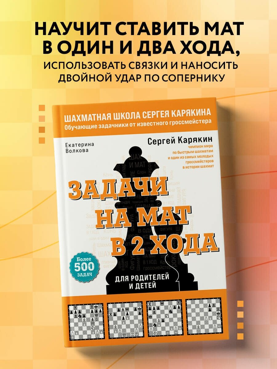 Шахматы. Задачи на мат в 2 хода. Более 500 задач (Карякин Сергей Александрович, Волкова Екатерина Игоревна); ООО "Издательство "Эксмо", 2023