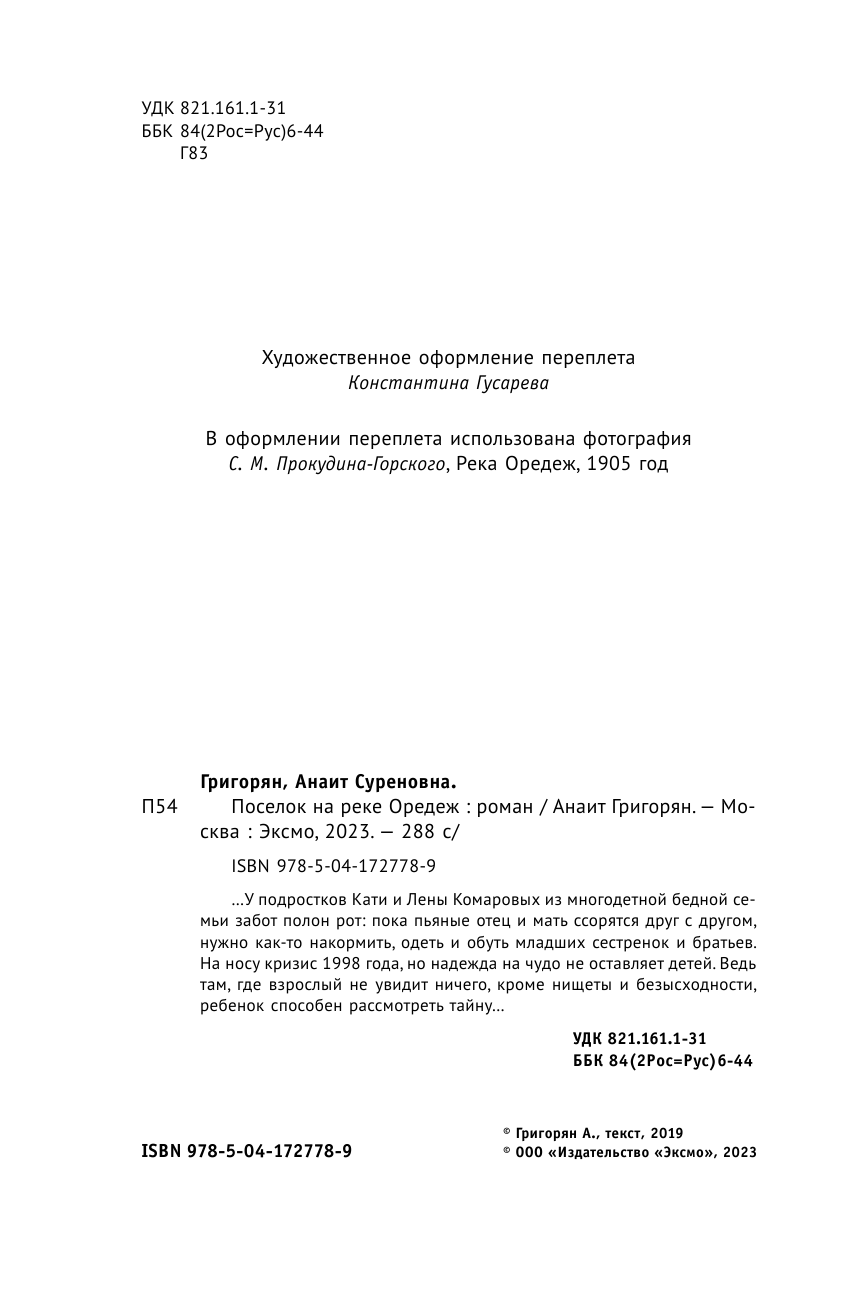 Книга: Поселок на реке Оредеж (Григорян Анаит Суреновна); Эксмо, Inspiria, Редакция 1, 2023