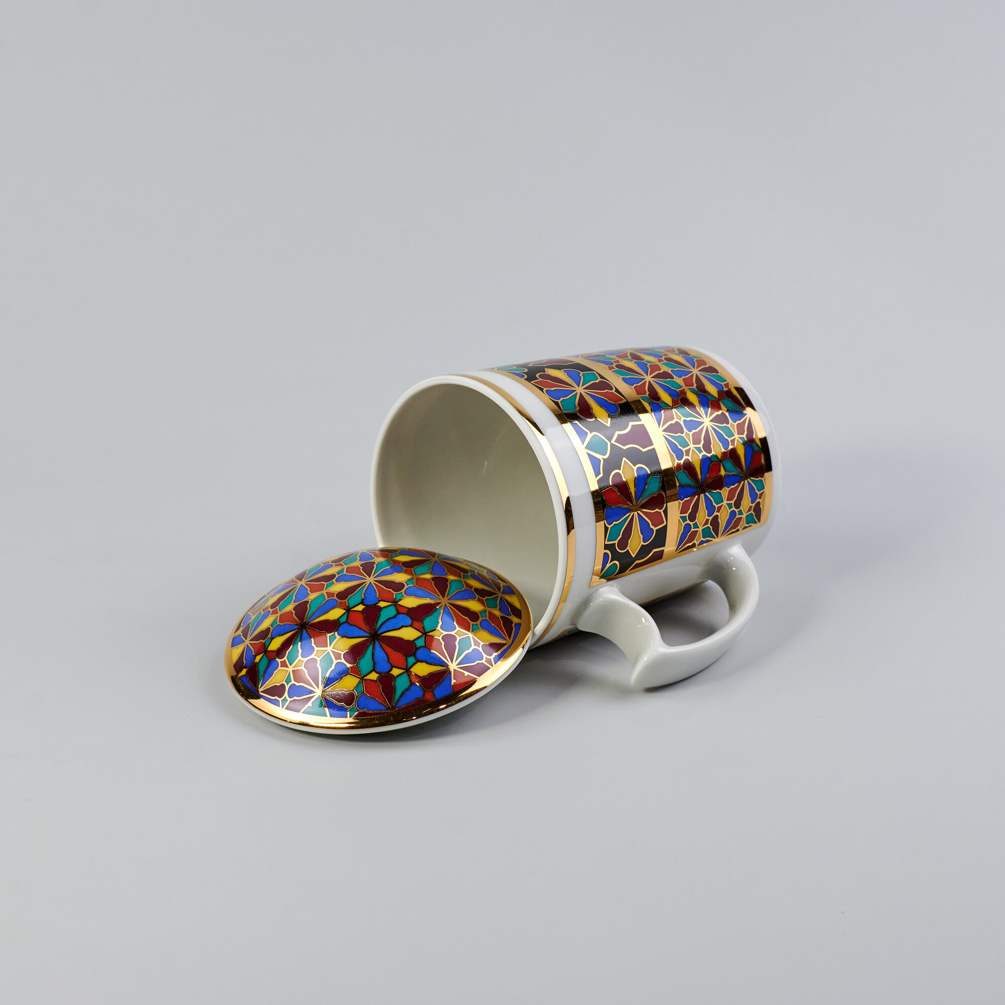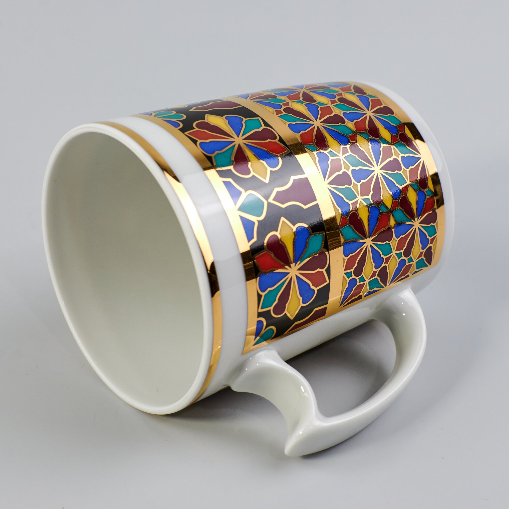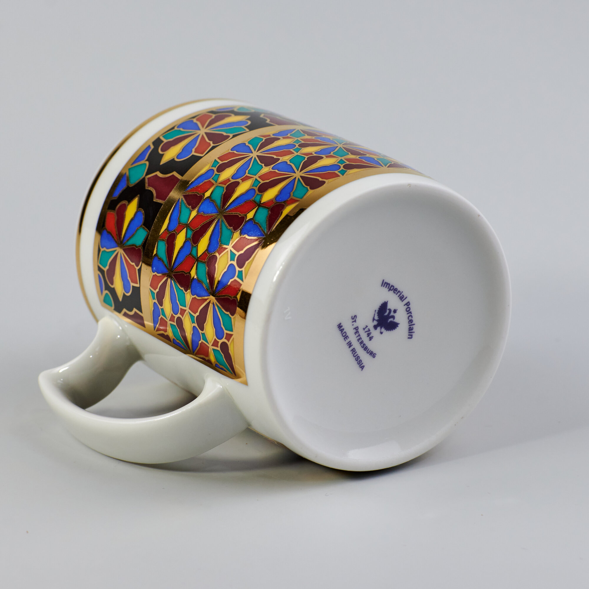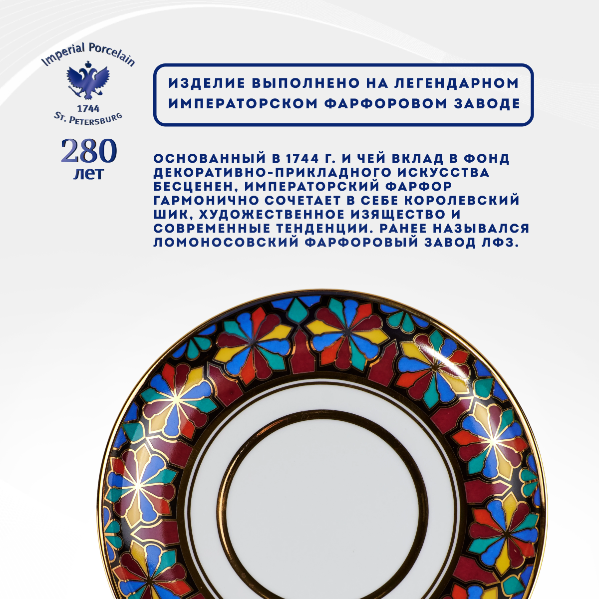 Выпускается с 1998 года.Твердый фарфор, надглазурная деколь, отводка золотом.Автор рисунка - Серафима Богданова, автор формы - Михаил Сорокин.Объем бокала - 380 мл, высота - 9.8 см. Рекомендуем мыть вручную. Обратите внимание! Объем указан до краев, полезный объем может быть меньше на 10-50 мл в зависимости от формы изделия. Диаметр блюдца - 16 см.