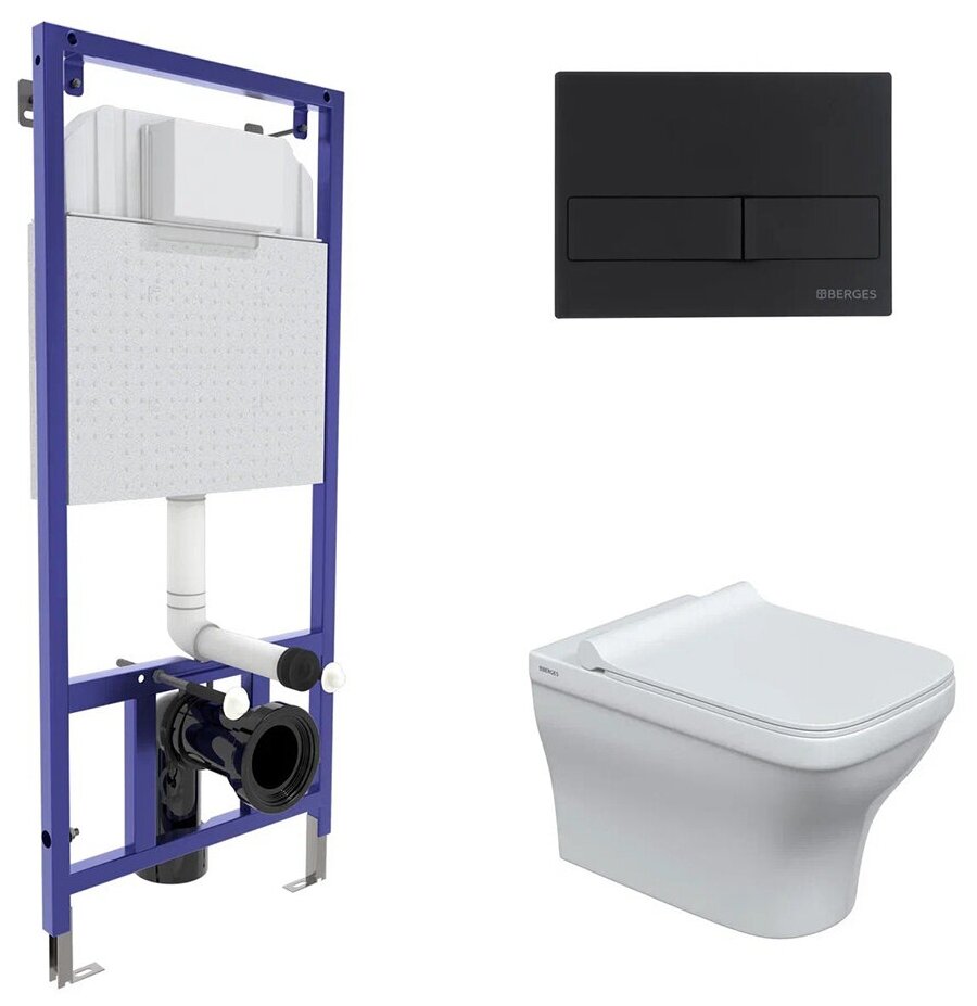 Комплект унитаза с инсталляцией Berges Wasserhaus Novum 042449 с сиденьем Микролифт и Черной клавишей смыва