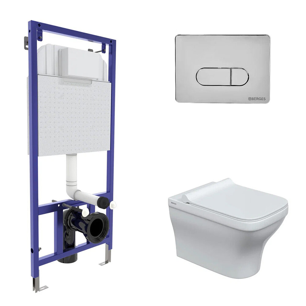 Комплект унитаза с инсталляцией Berges Wasserhaus Novum 042450 с сиденьем Микролифт и клавишей смыва Хром глянцевый