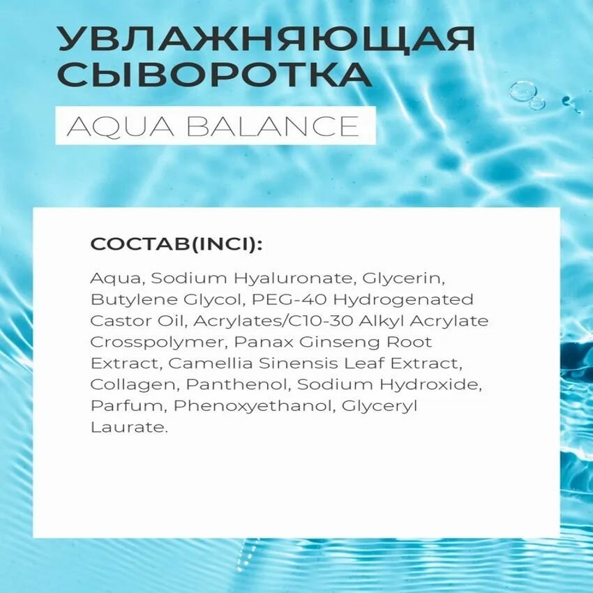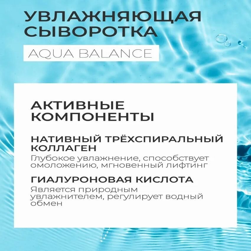 Коллагеновая сыворотка для лица Face Serum Aqua Balance усиливает действие крема, интенсивно увлажняет кожу, возвращая ей естественное сияние, способствует сокращению глубины морщин, повышает упругость и эластичность кожи. Подходит для ежедневного применения и для всех типов кожи.
