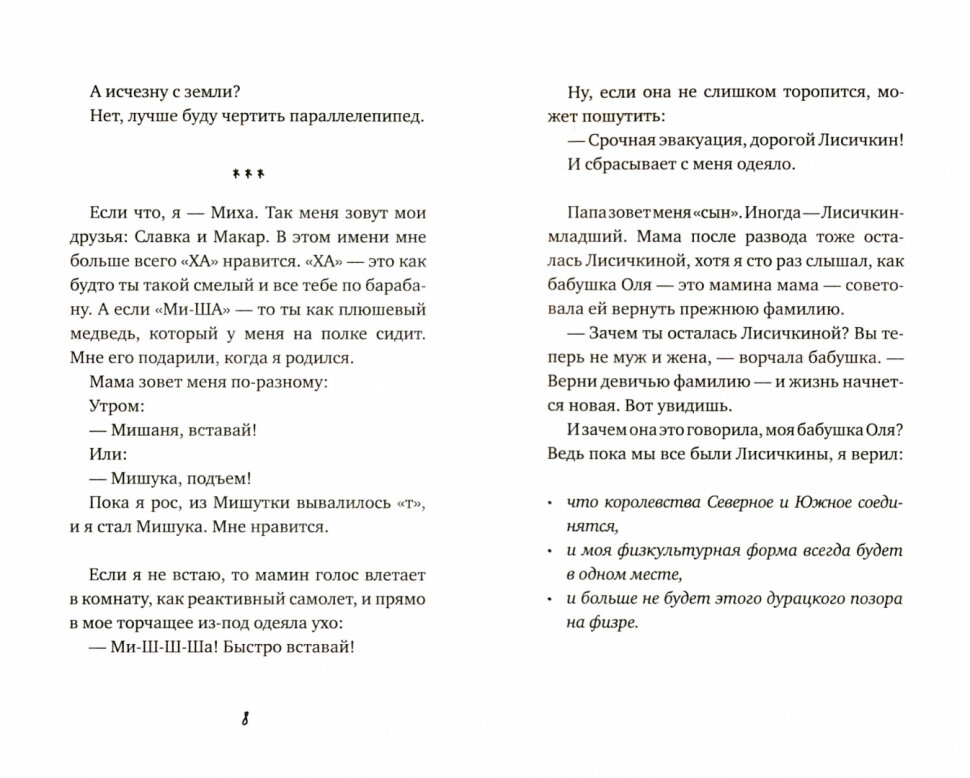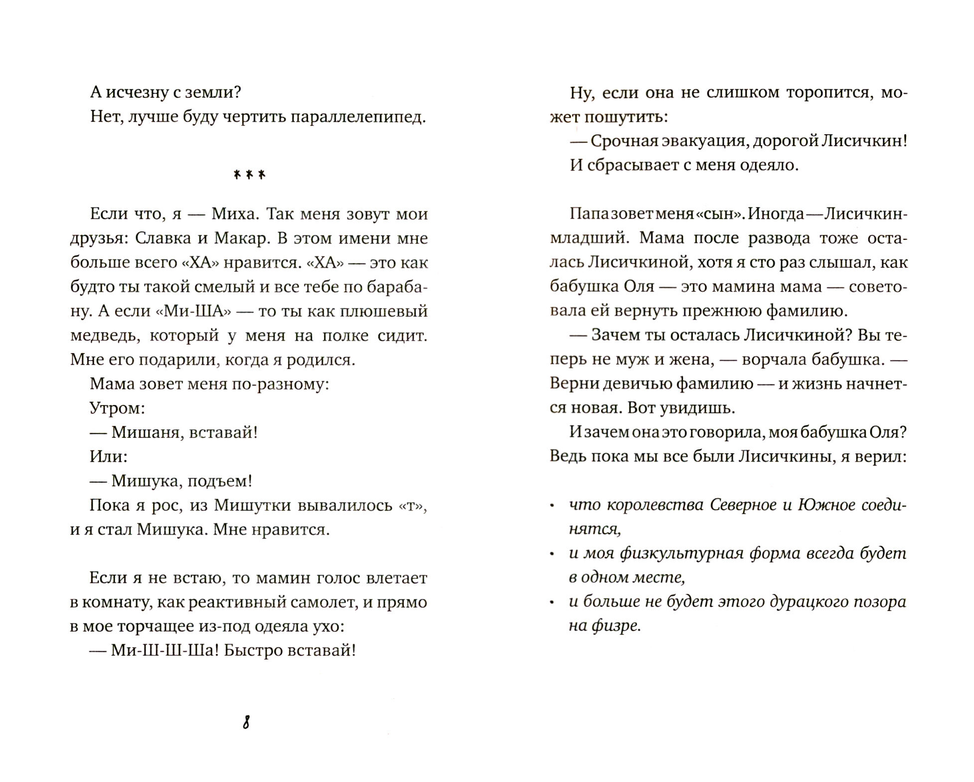 "Привет! Я - Миша и мне 10 Мои лучшие друзья зовут меня Миха, а дома меня зовут… На самом деле, это не так важно. Самое главное, что у меня два дома. Один, на Северной, где мы живем с мамой, а другой - квартира моего папы на Южной, где он живет с новой семьей. Больше всего на свете я хотел, чтобы дом был один, и родители жили вместе. А ещё я мечтал о собаке.