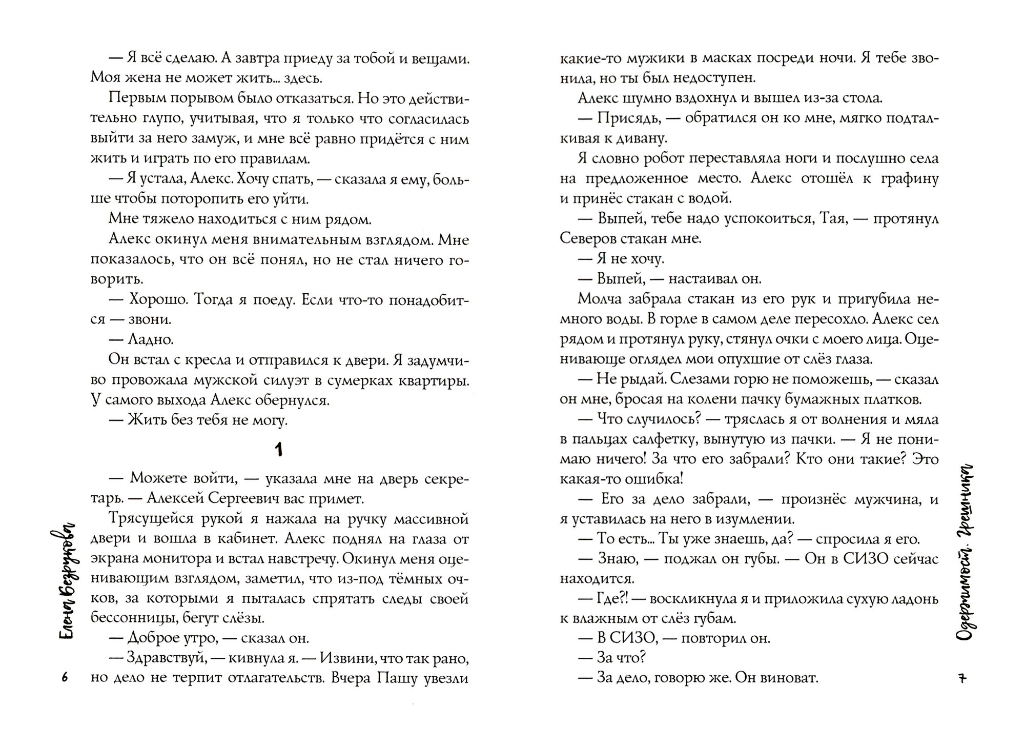 История любви Таисии и Алекса очень непростая но интересная. Тая очень любит своего мужа хоть он и не заслуживает этого он иза своих махинации попал в СИЗО но тая как любящая жена пошла просить Алекса о помощи . Алекс влюблен в таю до безумия но тая не замечает чувств Алекса Алекс пытается добиться любви и взаимности от Таисии их любовь это спектр чувств страсть нежность любовь доверие . Тая на протяжении всей книги практически не отвечает взаимностью Алексу но видя заботу поступки Алекса она доверяет свое сердце с опаской но потихоньку тая отаеевает и принимает заботу Алекса .но самое главное когда Алекс узнал о беременности Таисии он стал самый счастливый человек но что растопило сердце Таисии это то что Алекс принял и полюбил дочь Таисии .ведь не каждый мужчина может полюбить своего ребенка не говоря уже о чужом ребенке мне кажется что Алекс и Таисия очень красивая пара . А обложка у книги очень красивая хочу поблагодарить нашу любимую Елену за такую замечательную историю непростой но очень страстной любви спасибо большое Елена Безрукова успехов благополучия и процветания в творчестве