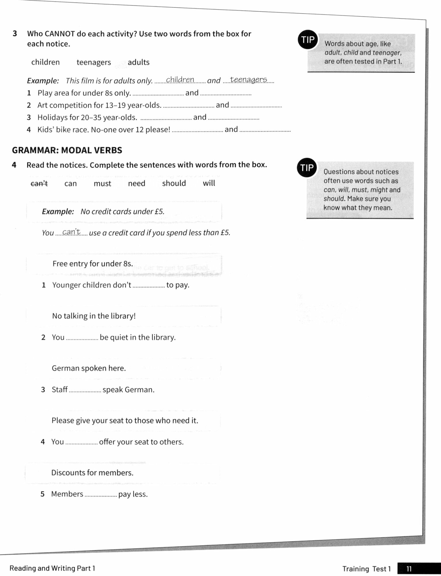 The extra grammar and vocabulary exercises focus on common A2 A2 Key for Schools candidate problem areas. These include real errors from Key for Schools candidates' exam scripts.