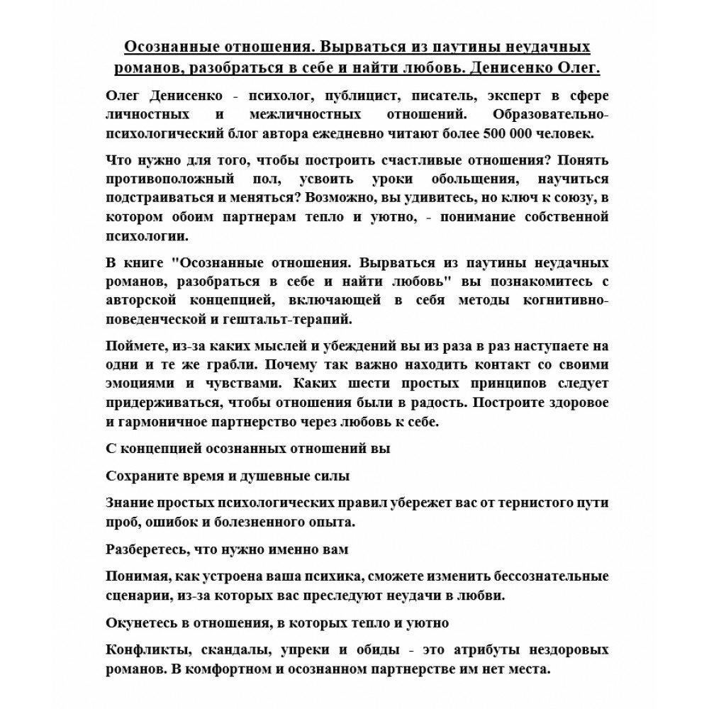 Осознанные отношения. Вырваться из паутины неудачных романов разобраться в себе и найти любовь (Олег Борисович Денисенко); АСТ, 2023