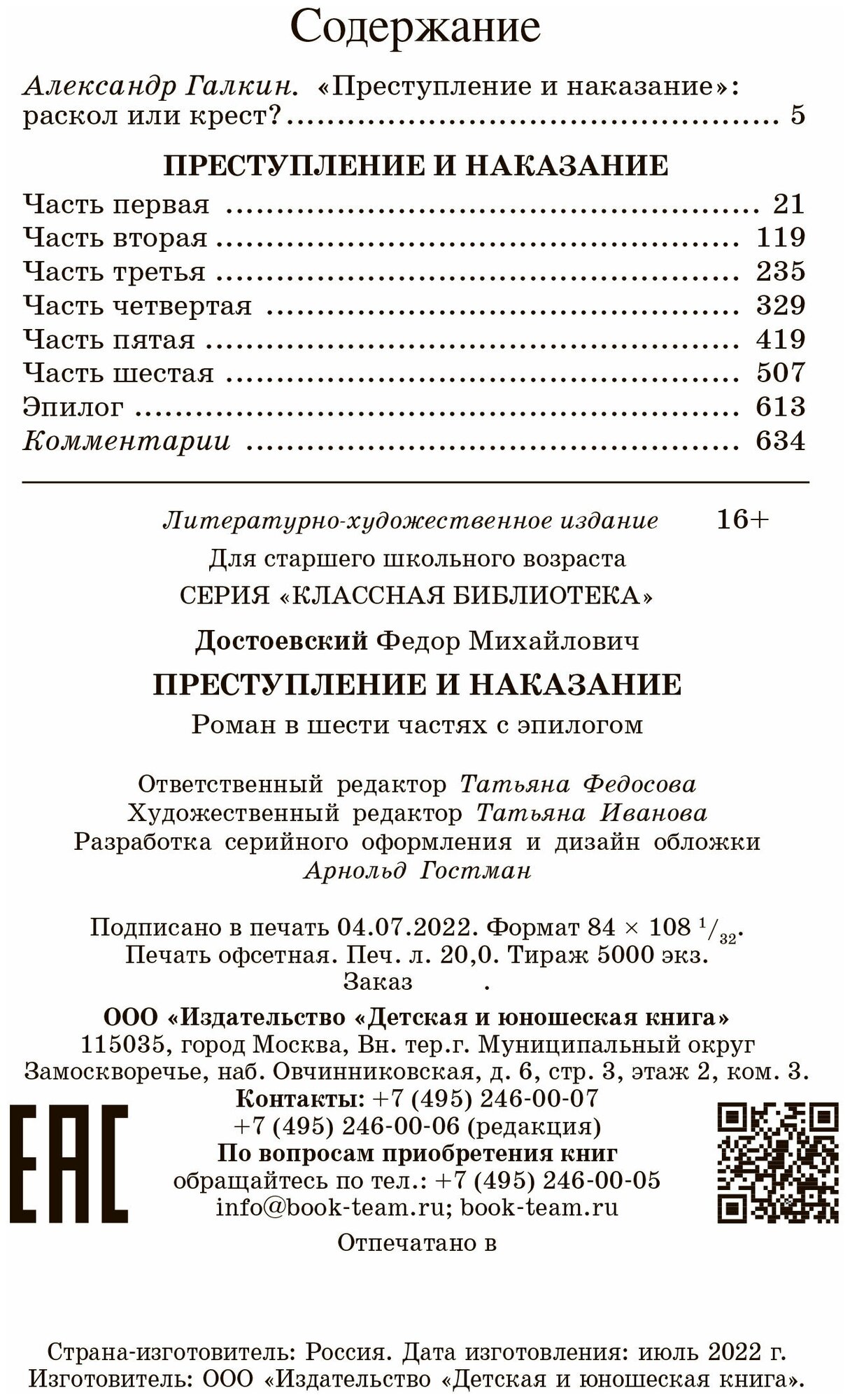 Книга: Преступление и наказание (Достоевский Федор Михайлович); Детская и юношеская книга, 2022