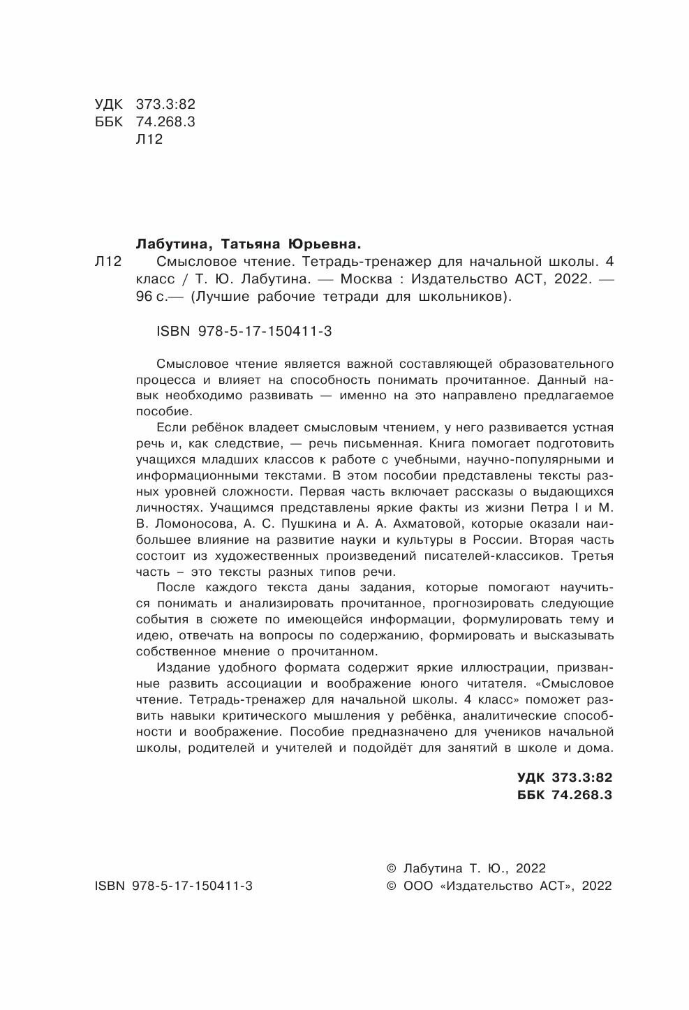 Смысловое чтение. 4 класс. Тетрадь-тренажер для начальной школы (Т. Ю. Лабутина); Издательство АСТ, 2022