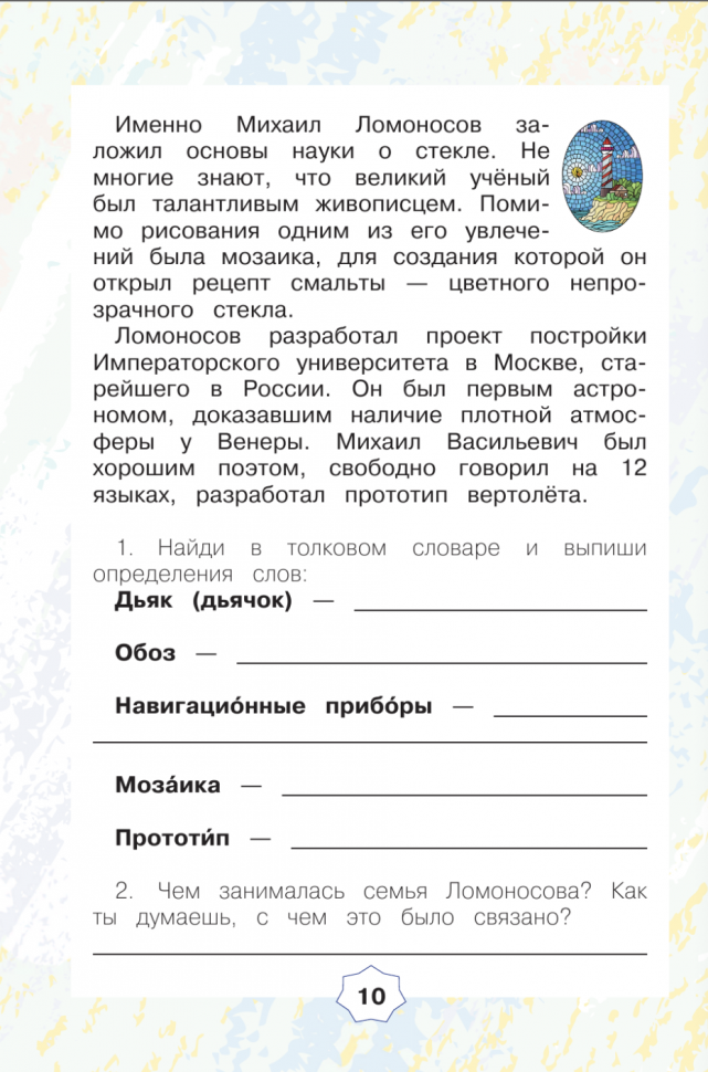 После каждого текста даны задания, которые помогают научиться понимать и анализировать прочитанное, прогнозировать следующие события в сюжете по имеющейся информации, формулировать тему и идею, отвечать на вопросы по содержанию, формировать и высказывать собственное мнение о прочитанном.