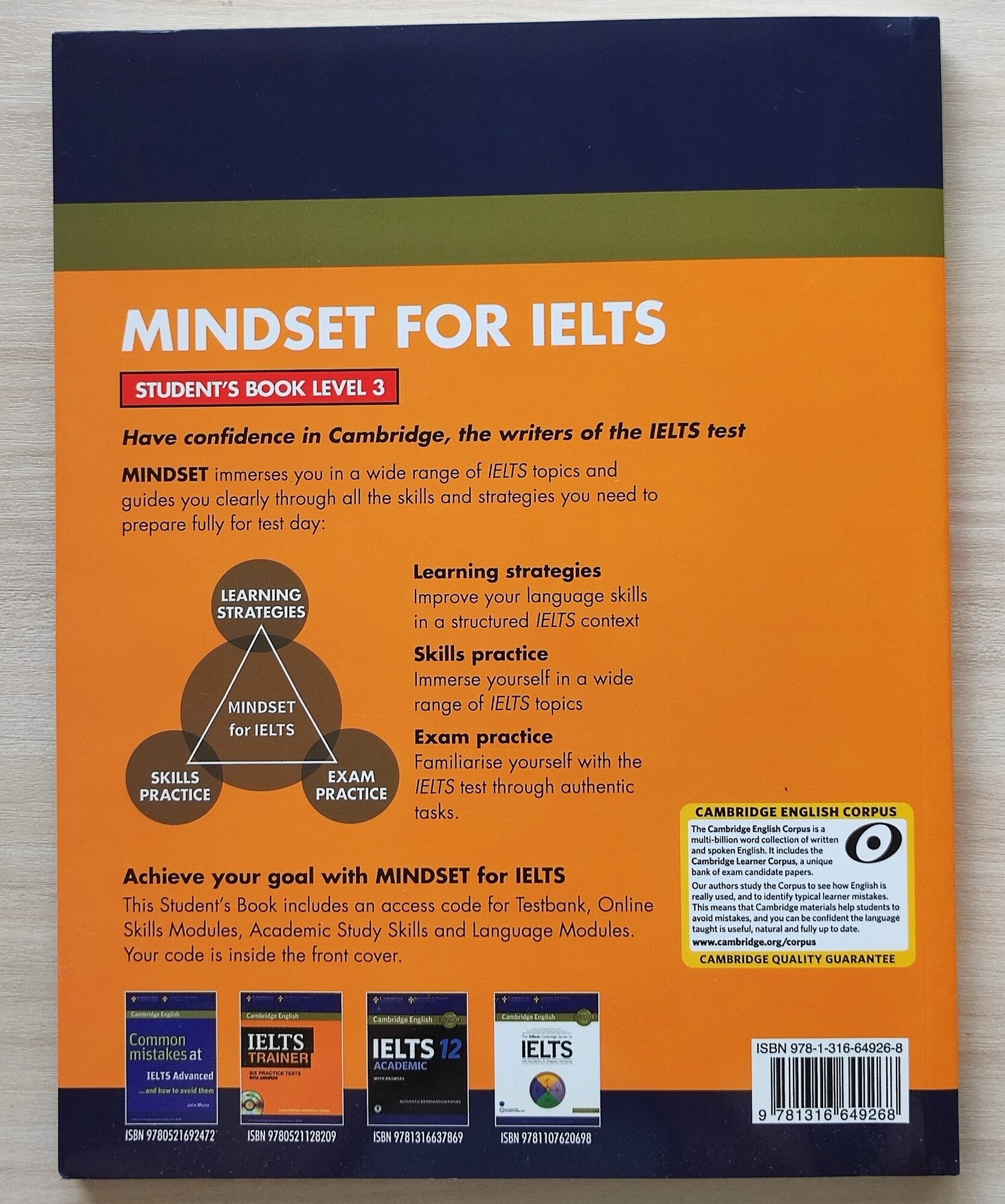 Mindset from Cambridge gets you inside the IELTS test with a unique blend of print and online content. Topic-based units organised by skill make it easy to find what you want. Designed for students aiming for Band 7.5 in the Academic Module, this Student's Book Level 3 includes learning strategies, skills practice and exam practice to help you achieve your goal. Online content includes skills modules, Corpus informed language specific modules and Academic Study Skills, plus access to authentic online practice tests in Testbank.
