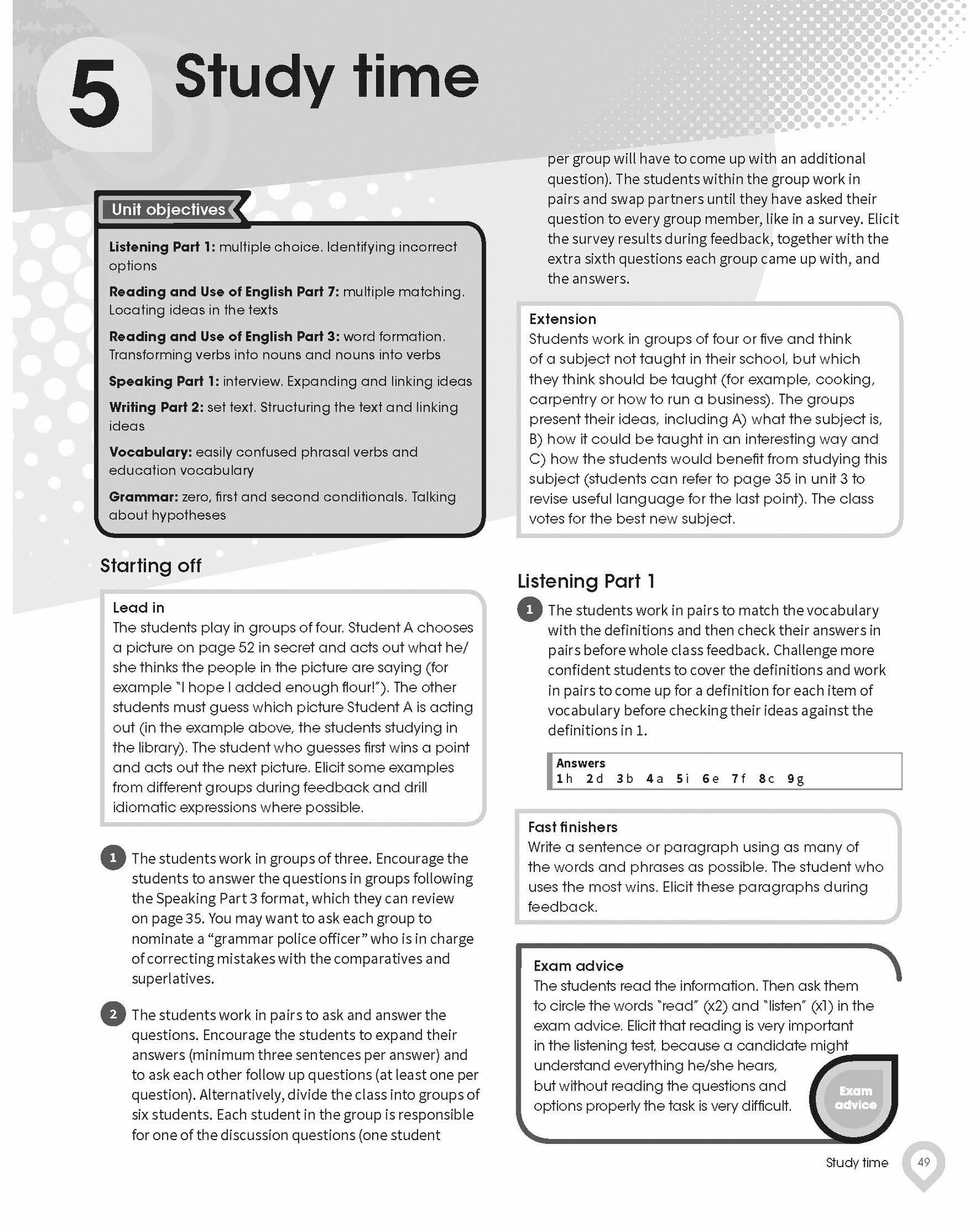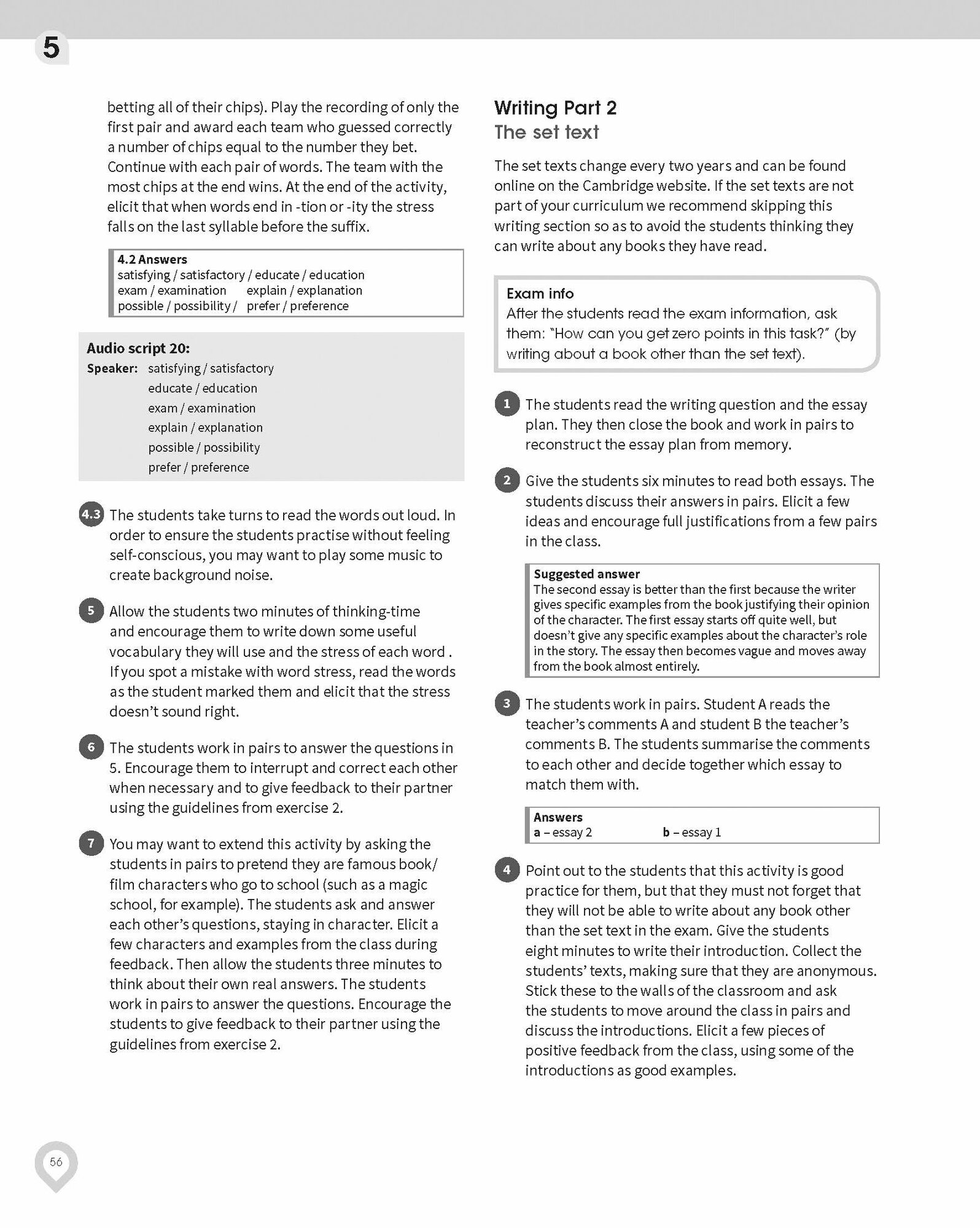 This Teacher's Book contains detailed teacher's notes, answer key and extra teaching ideas. The Downloadable Resource pack includes Class Audio, access to B2 First for Schools Speaking Test Videos, and worksheets containing extra skills practice for the exam and extension skills work to stretch students further.