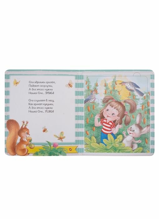 На каждом из шести разворотов малыша ждёт красочный пазл из 6 прочных деталей.