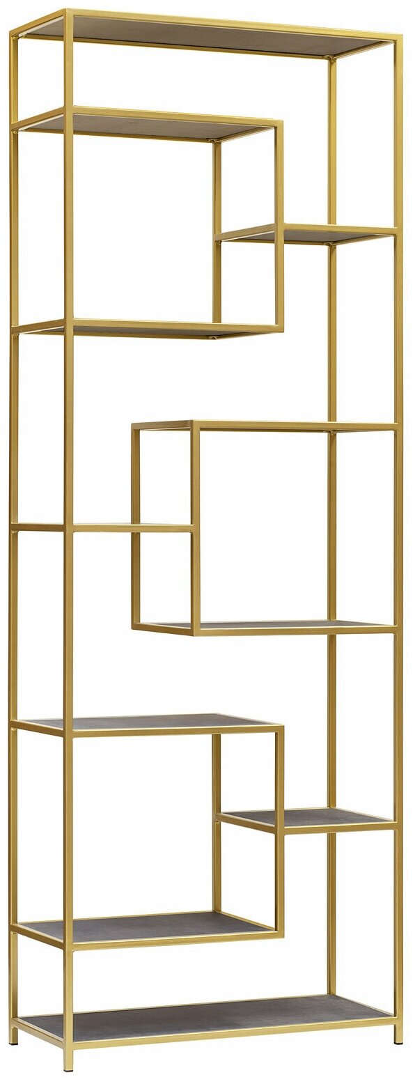 Золотой стеллаж OLIVIA с полками из керамогранита привлекает внимание элегантным дизайном и функциональностью. Утонченное сочетание золотого каркаса и каменных полок позволит разместить стеллаж в современном интерьере.