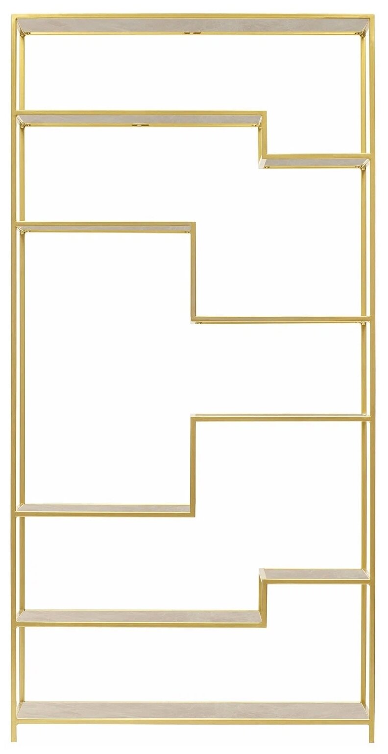 Золотой стеллаж JAQLENE с полками из керамогранита привлекает внимание элегантным дизайном и функциональностью. Утонченное сочетание золотого каркаса и каменных полок позволит разместить стеллаж в современном интерьере.